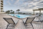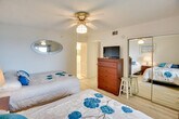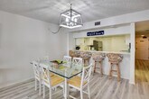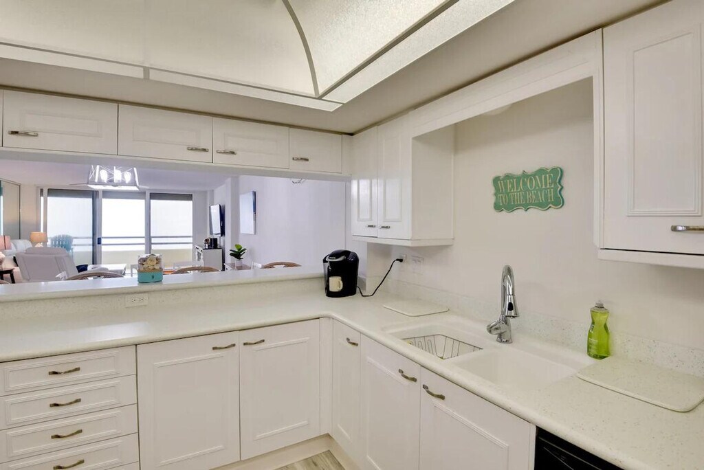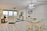 Feel at home in this Daytona Beach Shores vacation rental! This single-story, 2-bedroom, 2-bath condo is located on the 13th floor and offers step-free access via elevator. This condo features updated flooring, furniture, and appliances. Enjoy community perks such as an outdoor pool, indoor hot tub, fitness center, sauna, and dining area with grills. The condo also includes flat-screen TVs with cable, a dining table, books and board games, a fully equipped kitchen, cooking basics, dishware and flatware, a Keurig coffee maker, toaster, blender, a breakfast bar with seating, central air conditioning and heat, ceiling fans, linens and towels, complimentary toiletries, a hair dryer, and an in-unit washer and dryer. Community parking garage is available for 1 vehicle. You'll love sipping coffee and enjoying mornings on the property's quiet, low-traffic section of the shoreline. Afterward, visit hot spots like the Main Street Pier and Daytona International Speedway. Guests will have access to the entire property via self check-in. Guests must be at least 25 years old to book. No events, parties, or large gatherings are allowed. No pets are allowed. Smoking is not allowed. [SI]