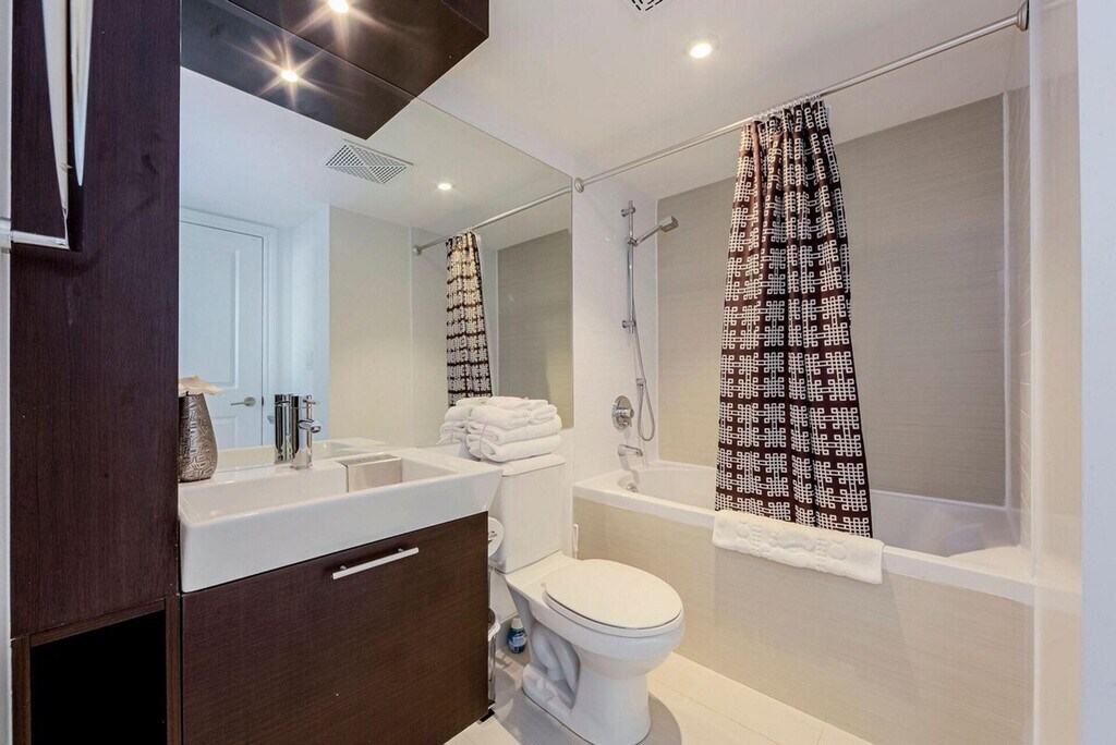 The advertised rate of C$18,505/month is the lowest available price, based on a 1 month(s) stay with a move-in date of April 28, 2026. Rates vary depending on the duration of stay, season, and other parameters. For exact pricing and additional pricing components, please visit our website and enter your desired move-in and move-out dates. The rate is applicable when billed upfront; it can be higher if billed in multiple payments. Feel at home in this comfortable 2-bedroom suite located in Aura at College Park, an iconic landmark on the Toronto skyline and the tallest residential building in Canada, standing at 78 stories. This suite features a fully functional kitchen with supplies such as tea, coffee, a kettle, coffeemaker, and toaster. A washer and dryer are available with supplies. The bathroom includes towels, shampoo, conditioner, body wash, a hair dryer, and other toiletries. Underground parking with in/out privileges is available upon request for an additional fee of $50 per night, with a minimum rental term of 3 nights. It's recommended to request parking in advance as spaces may be limited. In case of no availability, there is paid underground parking nearby. Aura Condos was designed by Graziani + Corazza and has direct access to the PATH network and College subway station, directly connected underground to a shopping mall. Floors 1–3 include major retailers (IKEA, Marshalls), banks, restaurants, and cafes. Guests must be 25 or over in order to check in. Pets are not allowed. Registration Number: STR-2603-GSSLBT [SI]