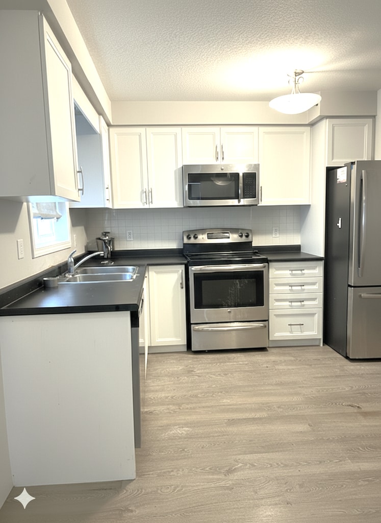 For Rent: 3-Bedroom, 1 -Bath Stacked Townhome – Kitchener, ON. 13B - 388 Old Huron Road, Kitchener, ON N2R 0J6 Available February 2026 | Rent: $2,500/month + Utilities Welcome to this modern and well-maintained 3-bedroom, 1.5-bathroom stacked townhouse. The main level features a bright living room, a convenient powder room, and a modern kitchen with stainless steel appliances, ample cabinetry, and quartz countertops. The kitchen opens to a dining area with double French doors leading to a private deck, ideal for outdoor gatherings or relaxing with family. Upstairs, you'll find three comfortable bedrooms, including a primary with his-and-hers closets, and a full 4-piece bathroom. In-suite laundry, extra storage, and a dedicated parking space add everyday convenience. Located just minutes from Conestoga College, Highway 401, schools, parks, walking trails, Doon Heritage Village, Huron Natural Area, Fairview Mall, and other essential amenities, it offers the perfect combination of comfort and location. Requirements: Proof of employment required; good credit is an asset. For more information or to book a showing, please contact the Leasing Agent at or call .