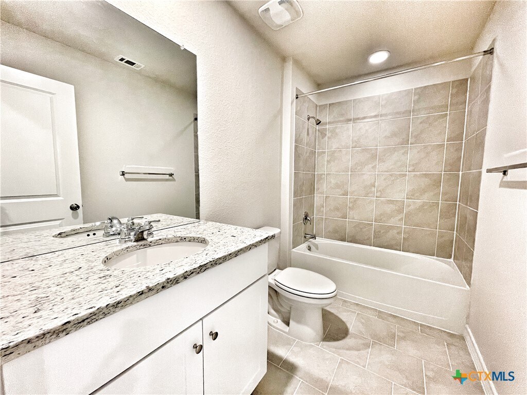 This single-story home offers an open and functional layout designed for modern living. A formal dining room sits just off the spacious kitchen,which features a breakfast bar,granite countertops,gas range,and stainless steel appliances - perfect for both everyday meals and entertaining. The inviting living area boasts recessed lighting and abundant natural light,creating a warm and comfortable space to relax or gather with friends and family. The large primary suite,located just off the living room,includes a double vanity,walk-in shower with tile surround,private toilet room,and an oversized walk-in closet. Down a separate hallway,you'll find two spacious secondary bedrooms and a full bath,offering privacy and versatility for family or guests. Enjoy outdoor living in the fenced backyard with a covered patio and full sprinkler system - ideal for weekend barbecues or quiet evenings. Conveniently located for an easy commute to San Antonio or San Marcos,and just minutes from H-E-B Plus,historic Gruene,Buc-ee's,and New Braunfels Town Center at Creekside. Residents also enjoy access to fantastic neighborhood amenities,including a community pool,playground,and upcoming connectivity to the West Alligator Creek Trail.