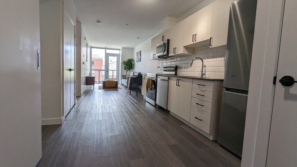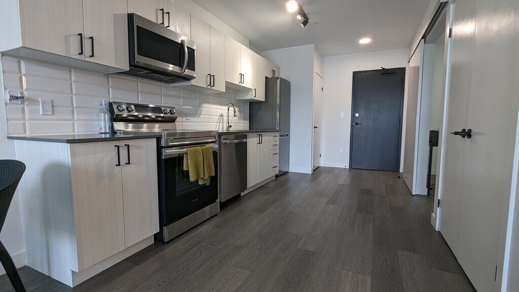 One Plus Den In Downtown Kitchener Experience luxury living in the heart of downtown Kitchener at 388 King St E!Choose from several spacious and modern floorplans for immediate occupancy. Our prime location is next door to one of Canada's oldest operating farmer's markets, artisanal bakeries, and the best coffee in the province.Our building offers the latest in modern conveniences, including facial recognition entry, 24/7 seamless parcel delivery, rooftop terrace with BBQ, stacked covered parking, electric vehicle changing station, bike storage, and elevator.Each suite boast large windows, and inside your suite, enjoy open-concept kitchens with new cabinetry and quartz countertops, stainless-steel appliances (fridge, stove, dishwasher and microwave), designer flooring, efficient LED lighting, large balconies, and air-conditioning.Tenants are responsible for hydro and water; internet is included.Parking is available for $95 per month.Come make 388 King St E your own personal oasis. Incentive: • 1 Month Free Rent