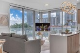 Feel at home in this luxurious condo located at Quadro in the Miami Design District. This fully furnished and equipped apartment offers two bedrooms, two full bathrooms, and a queen sofa bed in the living room, along with a balcony facing the city. Enjoy free parking, coffee, Wi-Fi, and cable. The building features resort-style amenities on the 6th floor, including a fitness center with a yoga and spinning studio, a lounge with co-working and conference areas, a game room, an outdoor dining area with a summer kitchen and BBQs, and a pool with cabanas overlooking Biscayne Bay. The location is convenient, with a 10-minute drive to Miami’s airport and a 15-minute drive to Miami Beach, and within walking distance to Wynwood and Midtown. The condo boasts an open-concept living and dining room with a queen-sized sofa bed, a flat-screen TV, a dining table, and an in-unit washer and dryer. The fully equipped kitchen includes a stainless steel dishwasher, microwave, electric stovetop, and a fridge with a water and ice maker. An espresso coffee machine with welcome pods, a tea kettle, a toaster, and other essentials are also provided. The master bedroom features a plush king-sized bed, direct access to a full bathroom, closet space, and blackout shades. The guest bedroom includes two twin beds, direct access to a full bathroom, closet space, and blackout shades. Both bathrooms come with freshly cleaned bath towels, welcome toiletries, and showers. Additional services such as in-stay housekeeping are available upon request for an additional fee. A pack n play is also available upon request. The building provides access to a pool, fitness center, BBQ area, indoor lounge, game and conference room, and outdoor pool lounge. This apartment is centrally located in the Miami Design District, offering walkability to shops, supermarkets, restaurants, art, and more. The area is well-connected, with easy access to public transportation and major roads, making it simple to explore Miami’s vibrant neighborhoods and attractions. The building is fob-secured with on-site 24/7 security. The maximum number of guests allowed is six. The pictures provided are from different units, and each apartment has a unique design that may differ from the images shown. Registration Number: #CND2331726 [SI]