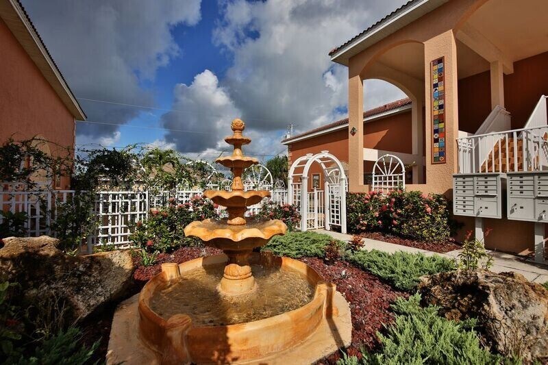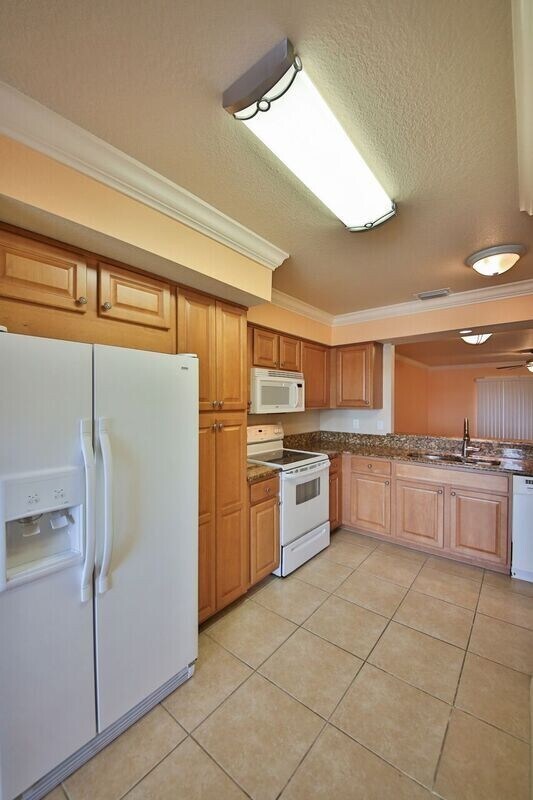 Prestigious SW Cape Coral reminiscent of Old Santa Barbara, newer 2007 construction, 2nd Floor large 2/2, small exclusive 19 unit (nearly 1390 sq. ft includes lanai per appraisal), new washer/ dryer upon request if needed, granite counters, crown molding, split bedrooms for privacy, tile and carpet flooring, much storage and closets, master bath has tub/ walk in shower, upgraded appliances, two entrances to lanai, sparkling pool, BBQ grills, tile murals, Spanish tile roofs, lush landscape, covered parking plus guest parking, hurricane windows, quality construction. Responsive ownership and management. Sorry no pets. $140 flat fee for water utilities, no water deposit & $25 Trash fee. NO HOA Application.
