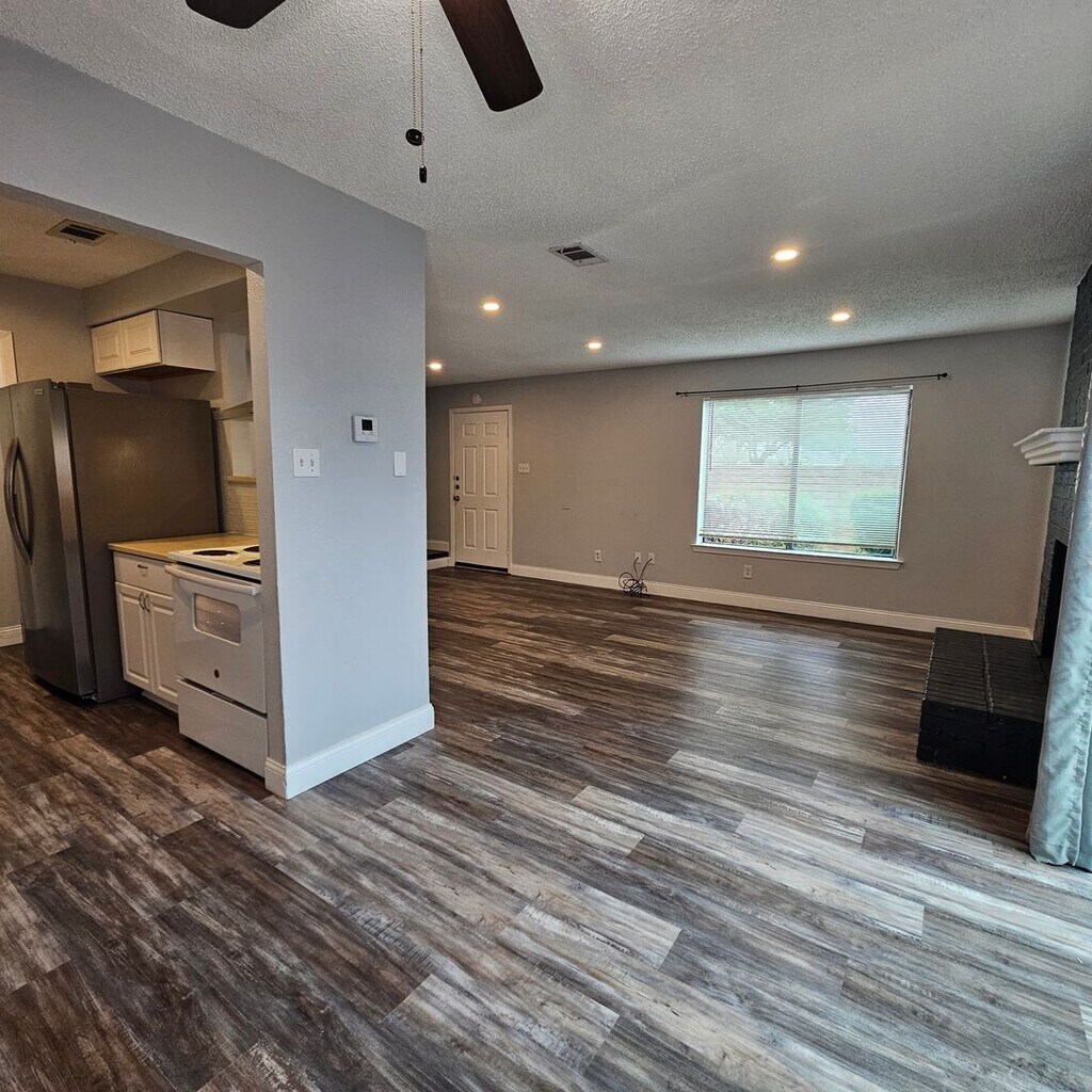 Welcome to Winter Park Place where you'll find a updated 3 bedroom corner unit Condo with an open floorplan. Features a wood burning fireplace, beautiful luxury vinyl plank floors, granite countertop, stainless steel appliances, faux wood blinds, ceilings fans, and a full size washer and dryer area. All bedrooms upstairs, no carpet, no storage unit, back open patio. Close to Bush Toll Road, Target, Sams, Walmart, Firewheel Shopping center, restaurants and more.