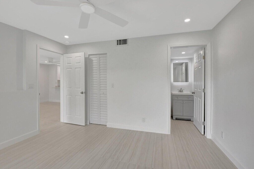 Step into coastal comfort with this fully renovated, ground-floor 2-bedroom, 2-bath East Boca Raton condo. This modern residence features a sleek kitchen outfitted with quartzite countertops, crisp white cabinetry, and stainless-steel appliances. Throughout the home, you'll find elegant porcelain tile flooring, recessed lighting, and custom closet systems. Both bathrooms have been updated with contemporary vanities, stylish lighting, and new plumbing fixtures. Additional updates include a 2024 washer and dryer, and A/C system. Unwind on your private screened-in patio and catch easterly breezes--perfect for relaxing after a day at the beach. Sanctuary Pines is within close proximity to the ocean, shops and restaurants. Residents enjoy access to the community pool and tennis courts.