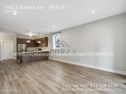 Stunning 4BR / 3BA Duplex Down in Bronzeville | New Construction | Private Balcony + Parking | TEXT Brand new construction luxury 4 bed / 3 bath duplex down in a prime Bronzeville location. Designed with condo-quality finishes, smart layout, and elegant touches throughout. **Interior Features: - Central heat and air - In-unit laundry - Honed marble backsplash - Quartz countertops - Stainless steel appliances - Spa-style bathrooms with deep tubs or oversized showers - Professionally organized closets - Landlord-installed window treatments - 50% more kitchen cabinet space than typical rentals - 4 spacious bedrooms: 1 on main level, 3 on lower level - One bedroom with en suite bath - Private balcony off main living area **Utility Bundle: $100/month Includes Zentro high-speed wireless internet, water, trash, recycling, and ButterflyMX visual entry system. **Outdoor parking available for $200/month. **Amazing Location Perks: 1 block to Green Line, 2 blocks to Mariano's Grocery, 5 blocks to I-90/94 **$300 move in fee **Pet-friendly: $50/month pet fee Link to schedule a showing: