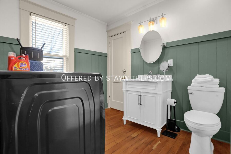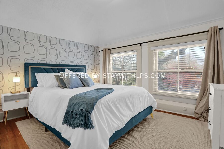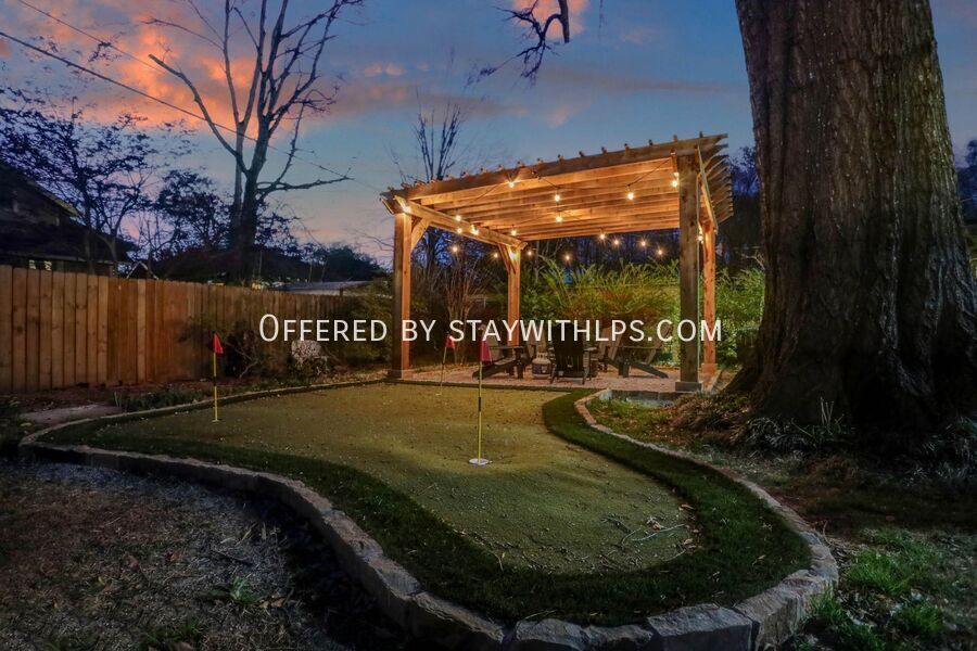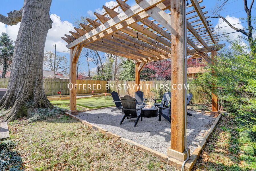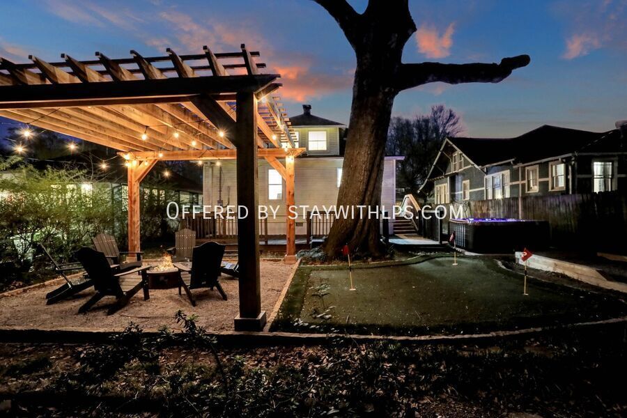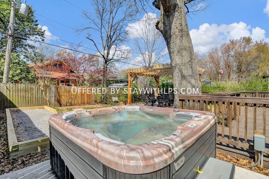 This beautiful 3-bedroom house has everything you need for a fun trip to Memphis. Newly renovated in December 2023, this home offers a hot tub, outdoor fire pit with seating, bocce ball, putt-putt, a pack 'n play and high chair, and is dog-friendly. It also features an EV charger, a fully fenced-in yard, and a porch swing, all professionally designed for your comfort. Experience comfort and convenience at this spacious 4-bedroom, 3-bath home, ideally situated just 4 miles from the iconic Beale Street and 9.5 miles from Graceland. Whether you're here to dive into the vibrant music scene or explore the legacy of Elvis Presley, this home is the perfect base for your Memphis adventure. The main spaces include four bedrooms and three full bathrooms. The upper level hosts two bedrooms, each with a king-sized bed, smart TV, nightstand and lamps, and ceiling fan with light. The first bedroom also includes a full-sized mirror and ensuite bathroom. The lower level features a bedroom with two full-sized bunk beds and large bean bags. The chef’s kitchen is fully stocked with high-end stainless appliances, a large fridge, ample cabinetry, and a coffee maker. The living room is adorned with an orange plush couch, modernized plush chairs, a 'Memphis' neon wall sign, bar tray, modernized lamp, and ceiling fan with light, with easy access to the dining area and kitchen. The property is dog-friendly and features an EV charger for your convenience. Enjoy the outdoor amenities including a hot tub, outdoor fire pit with ample seating, putt-putt, and bocce, all set under string lights for added ambiance. Uber and Lyft are reliable modes of transportation in Memphis, making it easy to explore the city. This home is ideally located just 4 miles from the iconic Beale Street and 9.5 miles from Graceland, offering a perfect base for your Memphis adventure. The primary guest must be at least 25 years of age to book this property, and locals are not allowed to stay. Absolutely no parties or events of any kind are permitted, as this is grounds for termination. Quiet hours are strictly enforced from 8 PM to 8 AM. If a noise complaint is received, your reservation will be canceled and no refund will be authorized. You must inform us beforehand if you plan on bringing a pet. The home is equipped with a Minut device that measures volume decibels and notifies us when noise levels exceed the set limit. This is a tranquil neighborhood best suited for guests looking for a relaxing getaway. A simple guest verification process is required within 48 hours of booking confirmation, and a rental agreement must be signed prior to check-in. A non-refundable $60 damage waiver is required, covering accidental damage during your stay, provided it is reported before check-out. [SI]