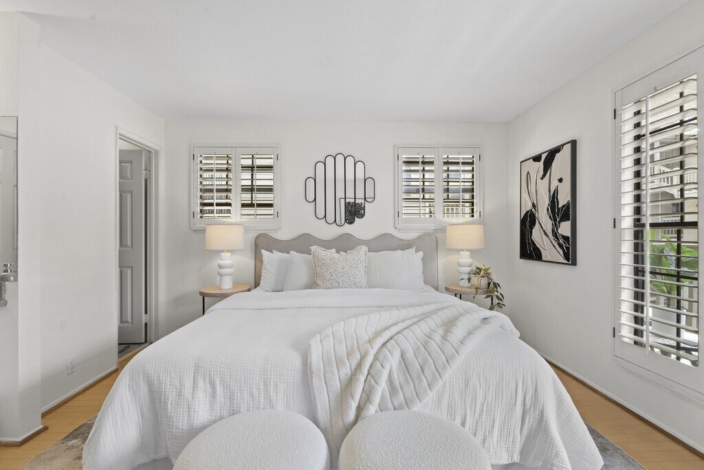 This quiet, light and bright dual-master townhome features 2 bedrooms and 2 baths, and is situated on a west-facing hillside in the gated community of Terraces at Mission Hills. It is ideally located between historic Old Town and charming Mission Hills. The home's open and airy floor plan is enhanced by light maple floors, ample windows, and a spacious balcony accessible from both the living room and the generous-sized master bedroom. Accented by decorative tile, the living room offers a fireplace and plantation shutters for this privately situated end unit. The kitchen's light wood cabinets are accentuated by a full complement of newer stainless steel appliances. In-unit laundry, two covered tandem parking spots, and elevator access enhance the convenience of this lovely home. The pet-friendly, secure community offers great amenities, including a pool, spa, and gym. With shops, restaurants, parks, and the trolley station just steps away—plus easy access to downtown, the airport, Balboa Park, and the beach—this is a fantastic location that combines comfort and convenience. QUALIFICATIONS: Monthly Income 2.5 x the rent FICO Score: 650+ Renter's Insurance required Non-Smoker/Vaper (of any kind) Pet upon HOA/Owner approval w/additional rent Rent: $2,995 Deposit - $2750 APR Management DRE. 00929059