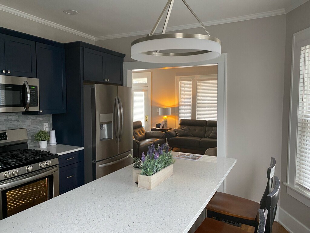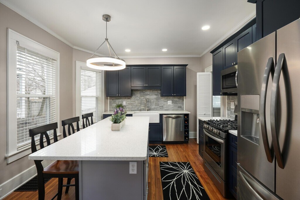 Move-in and start of lease can happen any time between 1/15/26 and 2/1/26. This home has it all! Charming and meticulously renovated 1144 sq foot 2-bedroom, 1.5-bathroom residence combines timeless elegance with modern finishes and contemporary flair. Home has glossy hardwood floors, decorative fireplace and airy layout. The first floor includes living room, half-bath, laundry and open, eat-in kitchen, newly remodeled with high-quality stainless steel appliances including refrigerator, microwave, gas stove, dishwasher and a generously-sized island perfect for entertaining or casual dining. Second floor has master bedroom with outdoor balcony, 2 closets and a bonus alcove that can be used as office, nursery or hobby room. Second floor also includes second bedroom and master bathroom. Basement has tons of storage space. The property has a private 2-car garage with new automatic garage door/opener, a lovely fenced back yard, washer/dryer, a full clean basement for ample storage, and central air. Close to German Village restaurants (South Village Grille, Red Brick Tap and Grille) and parks (Moeller Park, Schiller Park). Convenient to downtown, Children’s Hospital and The Ohio State University. The Kroger at Sycamore and Bank St. has great fresh selection and clean atmosphere. Up to 2 pets are allowed at $50 each per month, with a $300 non-refundable pet deposit per pet required. Up to two pets total allowed. Tenant pays for water, gas, electricity. Security deposit due at signing. No smoking allowed indoors. We will do a background check and a credit check. We look for a credit score of 660 or higher with no felonies or evictions. We will perform an income verification looking for 3x the monthly rent in income.