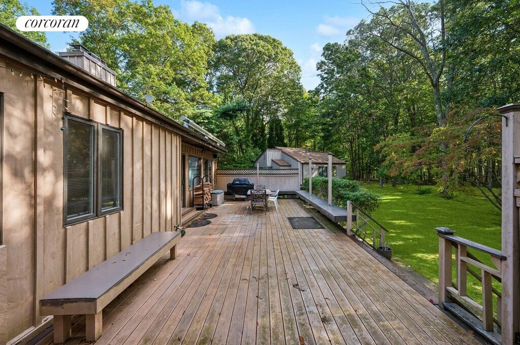Located in Hay Beach, this year round furnished rental is available and fully furnished. 3 Bedrooms and 2 full baths is located in the beautiful area of Hay Beach, just 2 minutes from Gardiners Bay Country Club. Large living room with fireplace and sliders out to the large awning covered deck. Large loft area off the living room could serve as an office area of for overflow guests. [[Rental Registration # 2025-L-0096]]