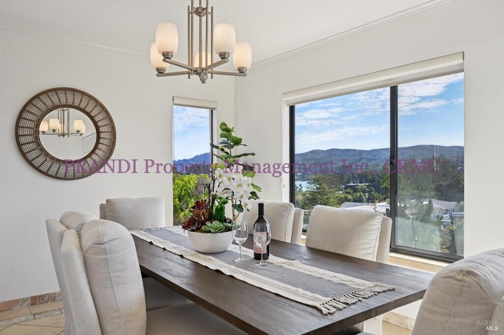 Experience stunning panoramic views of Richardson Bay and Mount Tamalpais from this charming residence, perfectly tucked away on a peaceful cul-de-sac in the coveted Strawberry Hills neighborhood. This lovely home greets you with a bright, formal living room featuring soaring ceilings and a cozy fireplace, complemented by a formal dining room and a sunny kitchen boasting sleek stone countertops. A sweet family room offers a comfortable space to unwind, while the private, enclosed deck is ideal for relaxing and soaking in the serene surroundings. The generous primary suite occupies the upper level, ensuring the most spectacular panoramic views, with two additional bedrooms, a full bathroom, and a convenient laundry room located downstairs. With an ideal location close to Highway 101, shopping, and scenic trails, this residence offers the perfect blend of comfort, style, and premier location. A small dog is possible upon approval with an increase in the deposit. If you would like to make an appointment to view this property, please call or text Lauren at .