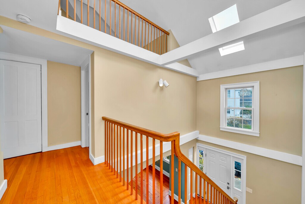 Welcome home! Newburyport 3br, 2.5 baths, 3 level Condo/Half house in a great location! First level has an updated kitchen, Living room with Gas fireplace, 1/2 bath, and washer/dryer. Second level has 2 bedrooms (one with fireplace) and a full bath. Hardwood floors throughout. Third level skylights for great lighting, full bath, bedroom and sitting area. Utilities to be paid by occupant. Gas heat and cooking, very efficient unit. Off street parking with a small backyard with deck for grilling and seating. Full basement for plenty of storage. Across the street from Cashman Park and Newburyport Rail Trail. 5 minute walk to downtown shops and restaurants. Available Dec 15, 2025. One year lease, 1st, last and security dep. It's a must see!!