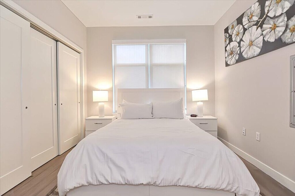 Feel at home in this spacious apartment in a luxury building in East Boston, just steps from the Waterfront and Maverick Station. This apartment features a full kitchen, in-unit laundry, hardwood flooring, and large windows. The fully equipped kitchen includes stainless steel appliances and two-toned cabinetry stocked with all the cookware, dishes, and utensils you’d need. The bathroom features modern fixtures, including a shower/tub combo, porcelain sink, fluffy towels, and a large mirror. Building amenities include a fitness center with yoga room, an indoor pool with outdoor sundeck, a rooftop deck with outdoor living and waterfront views, conference rooms with Mac stations, a beautiful lobby, a resident clubroom with gaming, fireplace and lounge area, a golf and sports simulator, a craft room, a coffee area, Wi-Fi available throughout the property, and a children’s playroom. Located in Jeffries Point, East Boston’s most desirable waterfront area, this apartment is in a vibrant neighborhood with beautiful parks and piers, proximity to Logan International Airport, and a thriving restaurant scene. Savor the flavors of a variety of ethnic restaurants, enjoy a stroll along the waterfront, explore Downtown markets, or just gaze out at the lights across the harbor. The pool is out of order. Includes a work desk and Wi-Fi. [SI]