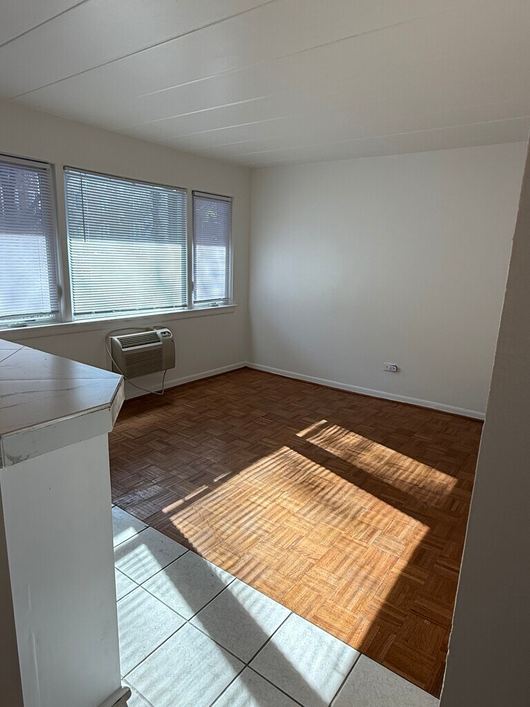 Nice 1 bedroom / studio apartment located in the heart of the Oak Park Arts District. Enjoy an easy commute of only 15 minutes to UIC and 20 minutes to the Loop via Blue Line. Two blocks from Publican Quality Breads and MORA (sushi restaurant), a variety of local eateries, boutique shops, gyms, and a 5 minute walk to CTA. Rent includes central radiant heat, water and scavenger. Cable ready. If needed, parking is available and located on our private lot for $75.00. Small dogs (under 20 lbs) allowed with pet security deposit. Small storage space and laundry on site. Credit check and employment verification. Please call or text to schedule showing! ==Neighborhood== Oak Park Arts District Two blocks from Publican Quality Bread & MORA Sushi Boutique Shops Independent Artist Galleries Health & Fitness Columbus Park ==Schools== Irving elementary, Percy Julian Middle school and OPRF High School Ascension Catholic School ==Transportation== Three blocks from the Blue Line CTA station 10 min commute to UIC campus Walking distance to Green Line Two blocks from I-290 (The Eisenhower). 15 minute drive to downtown Chicago ==Parking== Building maintains its own parking lot Street parking available through the Village of Oak Park