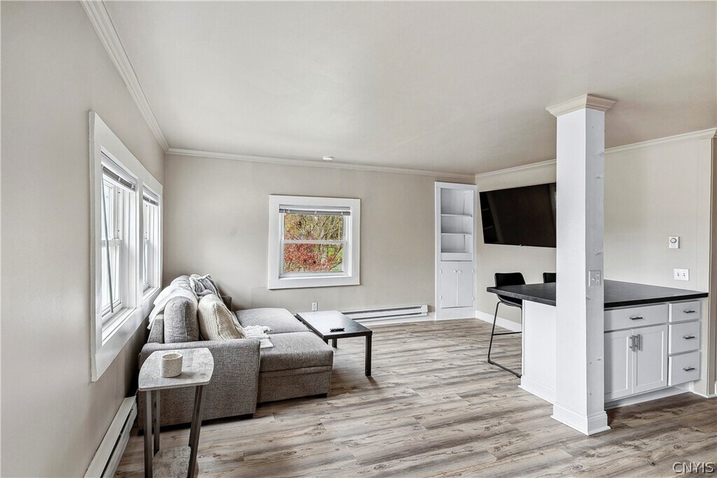 Spend your summer in the heart of Skaneateles Village,just steps from the lake,award-winning restaurants,boutique shops,and the iconic village pier! This fully furnished and beautifully remodeled 2-bedroom,1-bath apartment offers the ideal blend of comfort and convenience for your Finger Lakes getaway. Enjoy stainless steel appliances,a Keurig coffee maker,tiled shower,and a fully stocked kitchen. The open-concept living area features a large flat-screen TV and opens to a private deck with partial lake views,perfect for morning coffee or sunset cocktails. With a private washer and dryer,off-street parking,and all utilities (including trash service) included,this home is designed for effortless summer living. No pets. Monthly rate applies to July,and August. Available July 5th through Labor Day,with longer terms available. Please note that there is a current lease in place until 7/4 with an option to renew.
