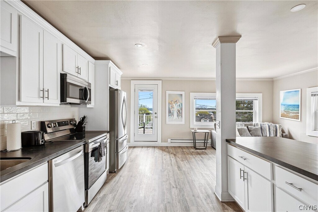 Experience living in the Heart of Skaneateles Village! Just steps from the lake,award-winning restaurants,boutique shops,and the iconic village pier,this fully furnished and beautifully remodeled 2-bedroom,1-bath apartment offers both comfort and convenience for your summer get-away. Inside,enjoy modern touches including stainless steel appliances,a Keurig coffee maker,tiled shower,and a fully stocked kitchen. The open-concept living area features a large flat-screen TV and opens to a private deck with partial lake views,perfect for enjoying morning coffee or watching the sun set. Additional conveniences include a private washer and dryer,off-street parking,and all utilities (including trash service) included,making your stay effortless. No pets. Available starting May 16th. Available monthly or longer term.