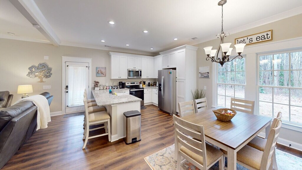 Welcome to your home away from home in the heart of nature! This newly constructed, fully furnished 3-bedroom, 2-bathroom home in Cartersville is ideal for peaceful getaways, extended work stays, or nature-filled adventures. Thoughtfully designed for comfort and convenience, it offers the perfect blend of outdoor escape and access to local culture. This home features an open layout with a cozy living room and smart TV. The fully equipped kitchen includes stainless steel appliances, stocked cookware, kitchenware, and a breakfast island for four. There is also a dining table that seats four. Enjoy hotel-quality linens and Wi-Fi throughout. A welcome tray with snacks and Keurig K-Cups is provided. This home is pet-friendly with applicable fees. The pet fee is an occupancy fee, not damage protection: 29+ nights is $10 per pet, per night; 7-28 nights is $15 per pet, per night; and 1-6 nights is $25 per pet, per night. Located in a tranquil area surrounded by outdoor charm, this home offers easy access to Cartersville's top attractions. Pine Mountain Trail West is a 15-minute drive, offering hiking, birdwatching, and scenic views. Downtown Cartersville is a 20-minute drive and offers dining, shopping, and local history. Explore the Booth Western Art Museum, Etowah Indian Mounds, Tellus Science Museum, Red Top Mountain State Park, and Rose Lawn Museum. Pets are considered and require approval before check-in. Please reach out directly to discuss your pet's stay. Upon approval, the fee is collected. Smoking and events are not permitted. For stays of 40–60 nights, a mid-stay clean is required (linens and toiletries replenished; personal belongings not included). Scheduling is flexible, and guest presence isn’t necessary. For stays over 60 nights, a Deep Clean replaces the standard checkout clean—more comprehensive for long stays. The standard cleaning fee—charged at booking—only covers the initial checkout clean. Any mid-stay clean, deep clean, restocking, or extra inventory requests are charged separately, on top of that fee. [SI]