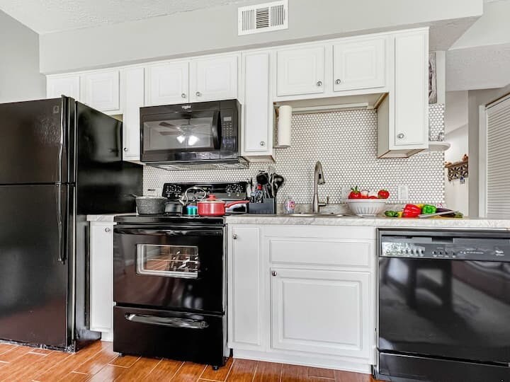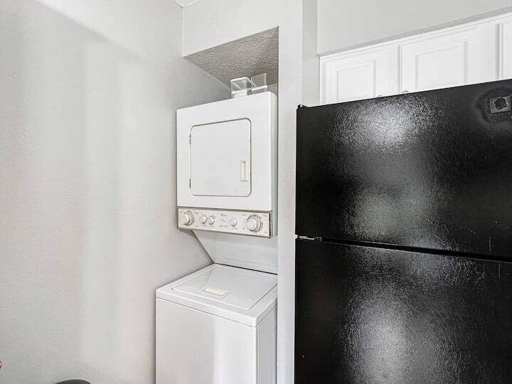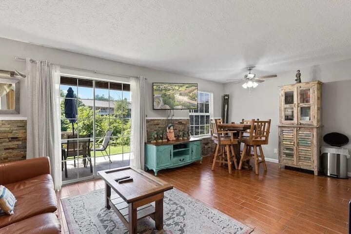 Fully furnished 1-bedroom, 1-bath condo offering a true walk-in entry with no stairs. This unit is designed for convenience and functionality, making it an ideal option for anyone seeking easy access and a move-in ready space. The layout includes an open living and dining area with good natural light and direct access to a private patio. The patio overlooks a peaceful water view and green space, providing a quiet outdoor area for relaxing or enjoying a morning coffee. The kitchen is fully equipped with all major appliances, cookware, and essentials needed for everyday use. Adjacent to the kitchen is a dining space that comfortably seats four. The living area is furnished with a sofa, coffee table, and TV, creating a simple and comfortable setup for daily living. The bedroom includes a full bed setup with additional space for storage and natural light from the window. The bathroom features a double vanity and a standard tub/shower combination. A washer and dryer are located inside the unit for added convenience. This is a ground-level, walk-in unit with no stairs, making it easy to access from parking and ideal for anyone looking to avoid steps. On-site parking is available directly near the unit. Located near Hwy 165, the property offers quick access to restaurants, shopping, and local attractions while still maintaining a quieter residential setting. Features: 1 bedroom / 1 bathroom Walk-in unit (no stairs) Fully furnished and move-in ready Option for unfurnished lease Water view with green space Private patio with outdoor seating Full kitchen with appliances and cookware Dining area Furnished living room with TV In-unit washer and dryer Double vanity in bathroom On-site parking Convenient access to Hwy 165 Furnished lease rate: $1,700/month. Unfurnished pricing available upon request.