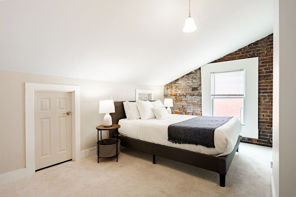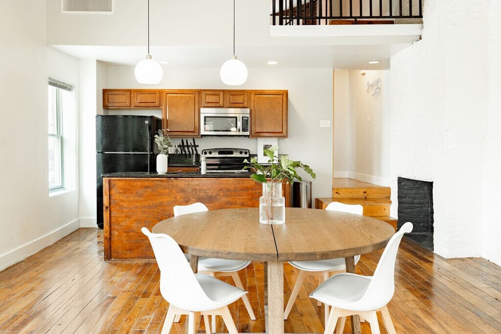 Style meets history and convenience in this newly renovated two-story condo, located just steps from Ziegler Park. Situated on the second floor, this home offers unmatched walkability to downtown and Over-the-Rhine (OTR), making it a seamless experience for those looking to explore the area. The second bedroom features an open loft-style design with a view of the living room, and both bedrooms are equipped with cozy queen beds. With soaring ceilings and a well-appointed kitchen featuring an open kitchen-living-dining layout, this condo provides a comfortable and stylish living space. Enjoy high-end hotel sheets, a custom tile shower, a large-screen smart TV, high-speed Wi-Fi, and free in-unit washer/dryer. Central air and heat ensure comfort throughout your stay. The advertised pool is Ziegler Pool, a 5-minute walk away, open from late May through early September. Located in the heart of Over-the-Rhine, Cincinnati's food and entertainment district, this condo boasts a 94 walk score, making it a walker's paradise. You'll find yourself within a short walk to hundreds of cafes, restaurants, boutiques, bars, and more. The free streetcar stop next door offers easy access to all of downtown, and you're just minutes away from sports stadiums, music venues, and top attractions like the Cincinnati Zoo and the Cincinnati Art Museum. This condo requires the ability to climb stairs. Parties and amplified music are strictly forbidden without advance written consent. Unauthorized parties may result in prosecution for criminal trespass under Ohio Revised Code and Cincinnati municipal code. Quiet hours are from 9:30pm to 8am, and any disturbance may lead to reservation termination without refund. Smoking and lighting anything indoors is prohibited, with a $300 cleaning fee for violations. Additional fees may apply for excessive pet hair, stains, unreturned keys, and deep cleaning. Security fees may be billed for any costs arising from behavior at the property, with a minimum fee of $150. [SI]