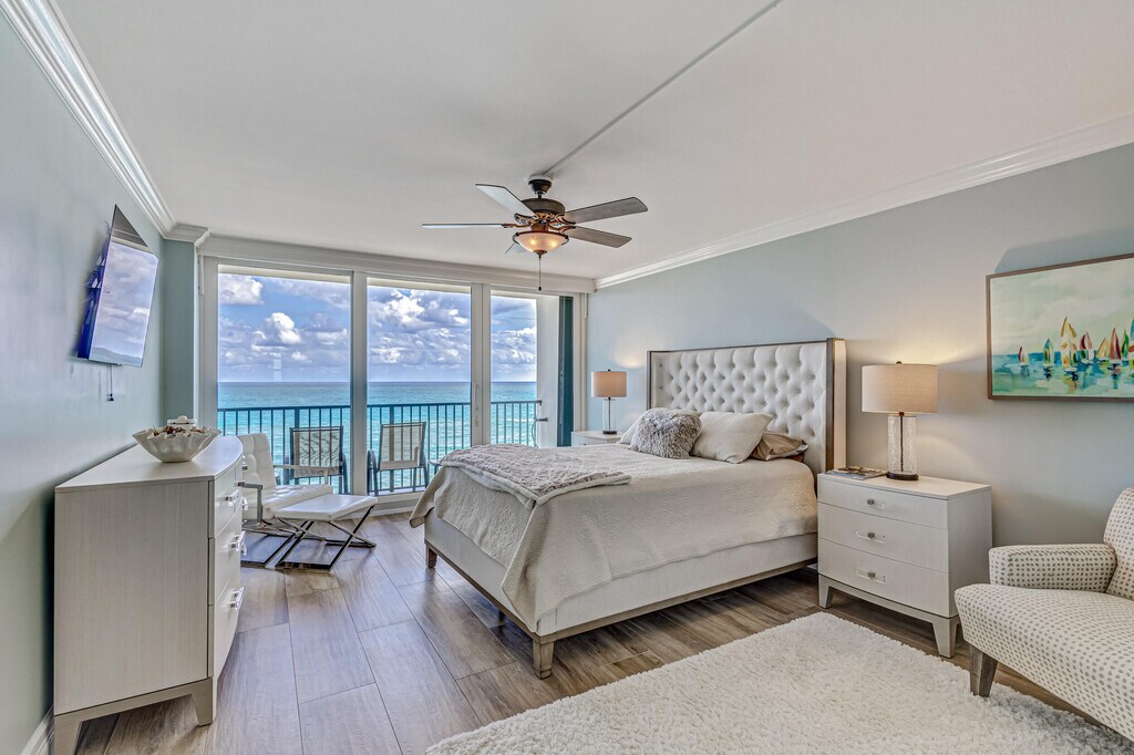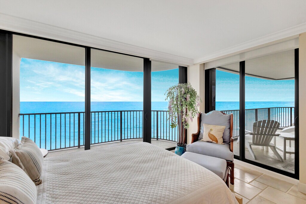 A singular opportunity: unmatched sunrise-to-sunset SE-corner 3BR/2BA residence on Jupiter Island, extensively designer renovated and furnished. Nestled in an intimate 44-unit boutique building within a quiet island enclave on a natural barrier reef island, the flow-through plan, wall of windows, and wraparound balcony frame sparkling clear turquoise ocean, crystalline Intracoastal, and picturesque Jupiter Lighthouse views. Amenities include a fitness center, infinity pool, three-story clubhouse with full kitchen/grill, Zen garden with BBQ, garage parking, and direct private white-sand beach access. With marinas, boat club, inlet access, waterfront dining, and world-class golf nearby, this residence is available now for annual lease in one of America's most exclusive coastal enclaves.