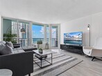 Available May 15. Completely renovated 1 bedroom, 1.5 bath unit directly below the penthouse level with exceptional panoramic ocean and city views. One of the few 08 units with an extended private balcony. Recent high-end renovation including kitchen with Pannellis Oneskin cabinets, quartz countertops, Porcelanosa tile and bath fixtures. New motorized solar and blackout shades. Enjoy resort-style amenities including new fitness center, two pools with cabanas and towel service, spa, sauna, BBQ area, putting green and 24/7 concierge, valet and security. Available fully furnished or unfurnished. Furnishings include items from Crate & Barrel, West Elm and Article. South of Fifth living at its best. Steps from the beach, South Pointe Park, cafes and fine dining. Sorry no pets. MLS # A11976247