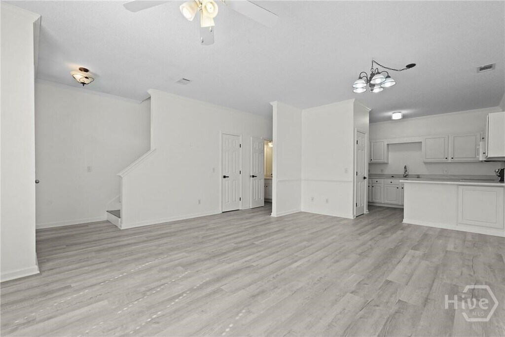 - Additional Property Details- Welcome to this beautiful 3-bedroom,2.5-bath townhouse in the gated community of Yorktown Place! Featuring an open-concept design,this home offers a spacious living room/dining combo and a bright kitchen with white cabinetry,a breakfast bar,and ample counter space. The main-floor owner’s suite boasts a large walk-in closet,private bath with a step-in shower and double vanity. This corner lot has a wrap around porch with 3 garages. It has laminate flooring throughout the main level,a private fenced patio,and a prime location in Savannah’s business district make this home a must-see! Conveniently located near shopping,restaurants,hospitals,schools,and Hunter Army Airfield. Schedule your tour today!