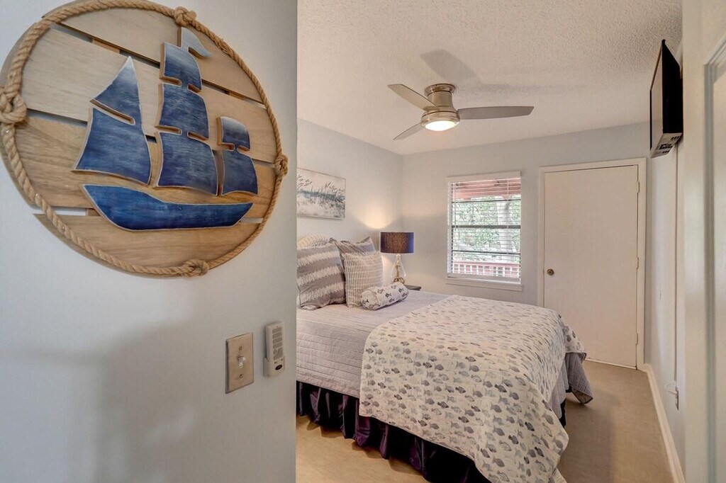 Welcome to your Hilton Head getaway! This fully renovated 1,200 sq ft townhouse is designed with comfort, style, and convenience in mind—perfect for families, couples, or groups of up to 6. On the first floor, you’ll find an open-concept living and dining area with cozy seating and a sofa bed for extra guests. The modern kitchen is fully equipped with everything you need to prepare meals, from morning coffee to family dinners. A full laundry room is also available for your convenience. The second floor features two beautifully appointed bedrooms, offering a restful retreat after a day at the beach. Each room is designed for comfort, with fresh linens, ample storage, and thoughtful touches to make you feel at home. The modern kitchen is fully equipped with everything you need to prepare meals, from morning coffee to family dinners. A full laundry room is also available for your convenience. Pets are welcome with a $25 per pet, per night fee. Each reservation includes parking for up to 2 cars. As a guest, you’ll also have access to the onsite pool, making it easy to cool off and relax between beach outings. Step outside and you’ll discover that you’re right in the heart of Hilton Head Island. The Sea Turtle Marketplace is just next door with grocery stores, restaurants, and even a Dunkin’ Donuts for your morning coffee. Burkes and Bradley Beach are only 5 minutes away, so you can enjoy sand, sun, and ocean breezes in no time. Check-out is at 10 AM. A late check-out without authorization will lead to a night-rate cost penalty. Parties are fully prohibited and quiet time is from 10 PM to 6 AM. There is a $300 penalty for smoking on the property, and you will be dismissed from your rental without a refund. A $250 penalty applies if noise level or other obscene behavior requires a police callout, and you will be dismissed from the property without a refund. There is a $100 penalty for leaving trash outside the entrance to your property. Damage to the interior of the property or common areas will result in a pro-rated auto-chargeback from your booking account. On checkout, please turn off the lights, the A/C unit, water, and gas/stove, and lock the door behind you. Penalties will automatically be withdrawn from your booking account. [SI]