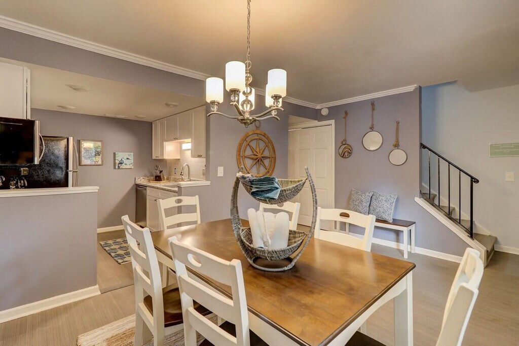 Feel at home in this newly renovated Hilton Head townhome featuring 2 bedrooms. This 1,200 sq ft townhouse is designed with comfort, style, and convenience in mind, perfect for families, couples, or groups of up to 6. The first floor offers an open-concept living and dining area with cozy seating. The modern kitchen is fully equipped with everything needed to prepare meals. A full laundry room is also available. The second floor features two beautifully appointed bedrooms, designed for comfort with fresh linens and ample storage. As a guest, you’ll also have access to the onsite pool. Pets are welcome with a fee of $25 per pet, per night. Each reservation includes parking for up to 2 cars. Located in the heart of Hilton Head Island, the Sea Turtle Marketplace is just next door with grocery stores, restaurants, and even a Dunkin’ Donuts. Burkes and Bradley Beach are only 5 minutes away. Parties are fully prohibited. Quiet time is from 10 PM to 6 AM. There is a $300 penalty for smoking on the property, and you will be dismissed from your rental without a refund. There is a $250 penalty if noise level or other obscene behavior requires a police callout, and you will also be dismissed from the property without a refund. There is a $100 Penalty for leaving trash outside the entrance to your property. Once your trash cans are full, please deposit trash in the large trash cans located at the building entrance. Please do not throw trash or paper towels in the toilet to avoid clogging. Damage to the interior of the property or common areas will result in a pro-rated auto-chargeback from your booking account. On checkout, please turn off the lights, the A/C unit, water, and gas/stove, and lock the door behind you. Penalties will automatically be withdrawn from your booking account. Please register your pets upon arrival at the office, located at the back of the complex near the swimming pool. If pets are not registered, the onsite manager may issue a fine. Pets must always wear a collar with a current rabies vaccination tag and be accompanied by a responsible individual when outside your unit. Please park in the space that matches your unit number. Parking passes will be provided on the kitchen table, and please be sure to return the passes to the kitchen table at checkout to avoid replacement fees. [SI]