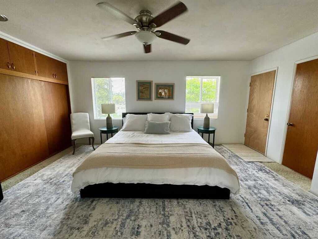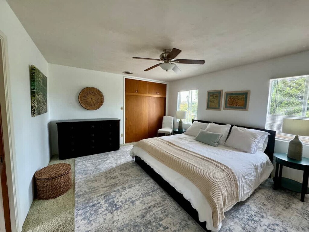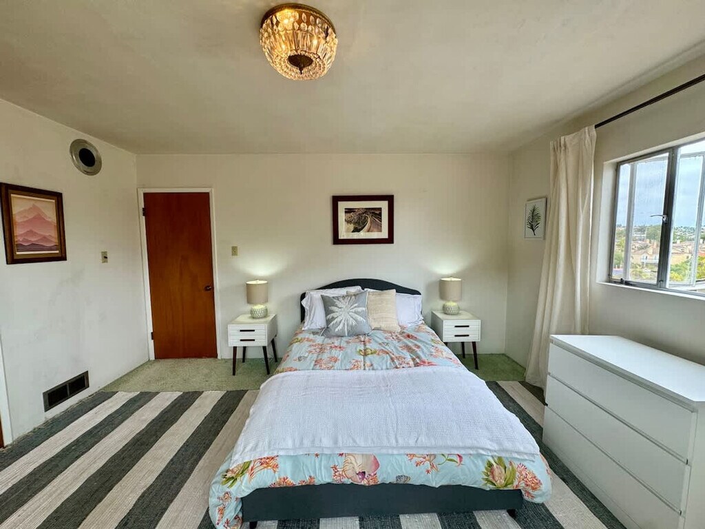 Welcome to your perfect coastal getaway! This large and laid-back 2-bedroom lower unit offers a bright and open living space and two oversized walk-in closets, ideal for extended stays or families needing room to unwind. Step outside to your private outdoor dining area or enjoy the lush shared backyard featuring a BBQ grill, fire pit, second patio table, and even a fruit orchard shared with the upstairs unit. Looking for more space? The entire house can be rented. Relax and recharge in this stylish 2-bedroom vacation rental located in the heart of Carlsbad, just minutes from the beach. Enjoy a light ocean breeze and a peek-a-boo view of the Pacific, the perfect backdrop to your Southern California escape. Inside, you’ll find spacious bedrooms, a bright and open dining area ideal for family meals or game nights, and a fully equipped kitchen to make you feel at home. Whether you're winding down after a beach day or starting your morning with coffee on the patio, this home blends comfort and convenience effortlessly. Local attractions just minutes away include Tamarack State Beach, which is just 1 mile away, LEGOLAND California, Carlsbad Village shops, cafés, and restaurants, Carlsbad Premium Outlets, and scenic coastal trails and lagoons. Whether you're here for family fun, a romantic getaway, or a relaxing break by the coast, this Carlsbad gem puts you close to it all. [SI]