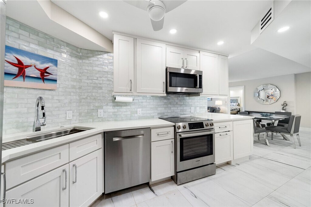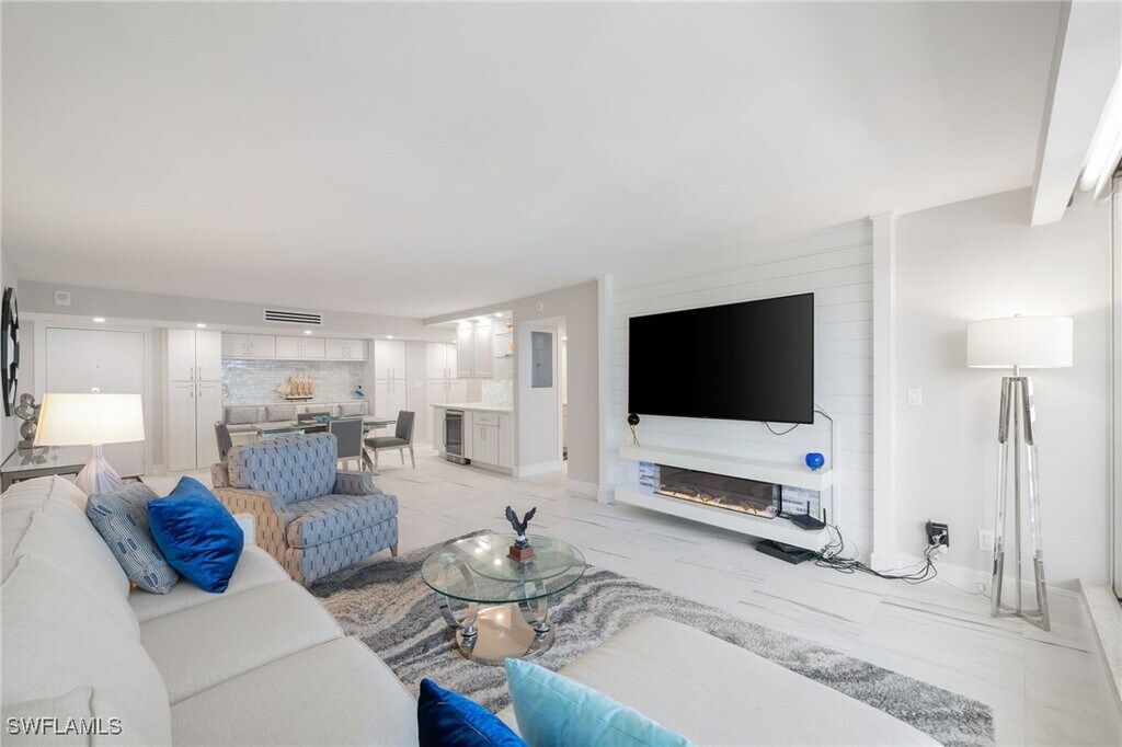 Just Listed and available beginning September 1,2025. This is an amazing value for a beautifully remodeled and fashionably furnished 2 bedroom 2.5 bath condo directly on the white sand beaches of the Gulf in the Park Shore neighborhood of Naples,FL Imagine sitting in the air conditioned comfort of your living room and watching the dolphins play or the pelicans diving in the sparkling waters of the gulf. The condo also provides a beautiful view of Venetian Bay from the east facing windows in the living room for a panoramic view of palm trees,turquoise waters and blue skies. This condo is located in a remodeled and renovated building named Surfsedge. The $15M renovation to the buildinng yielded an infinity pool and spa with fountains and waterfall,fire pit,social room,exercise room with Gulf views,2 guest suites and more. Surfsedge is set just a few steps out the back door to the beach and yet a short stroll across the boulevard to the upscale restaurants and shops at Venetian Village. Surfsedge is also just a few miles by car or bicycle from Olde Naples,The Waterside Shops,Strada at Mercato and the Naples Arts Center and Museum. This is a no pet building. All rentals must be 90 days minimum per the association. Please inquire for off-season rental rates.