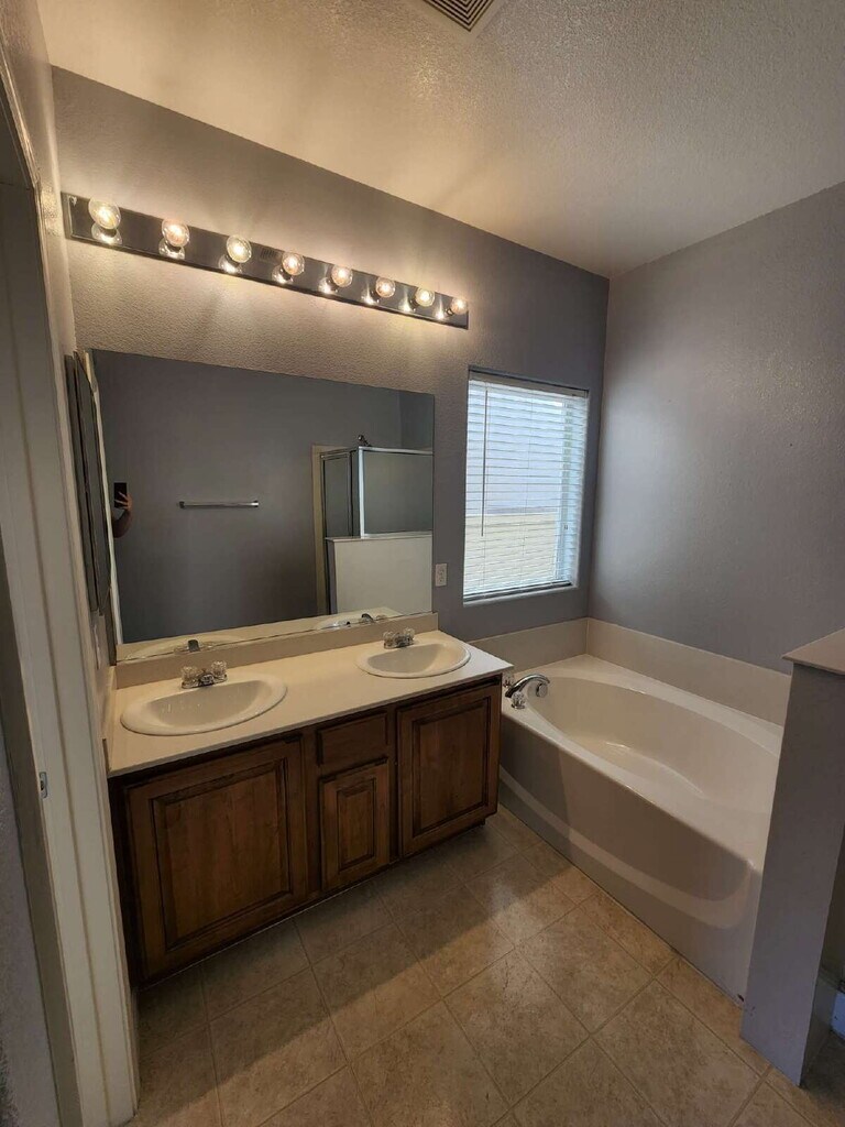 Single-story 3-bedroom home with a 2-car garage. Enjoy a spacious backyard complete with a covered patio and low-maintenance landscaping in both the front and back. The kitchen comes fully equipped with all appliances, recently upgraded quartz countertops, and a breakfast bar ideal for entertaining. The primary bathroom offers a separate tub and shower, while the primary suite includes a ceiling fan with light and a generous walk-in closet. Additional features include a cozy reading or office nook in the hallway. Move-in ready and waiting to be called home.