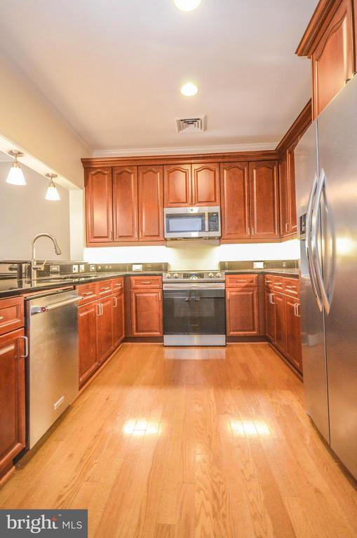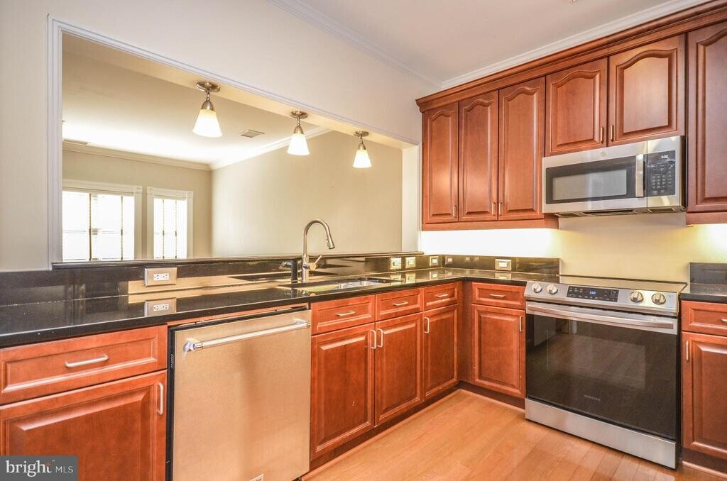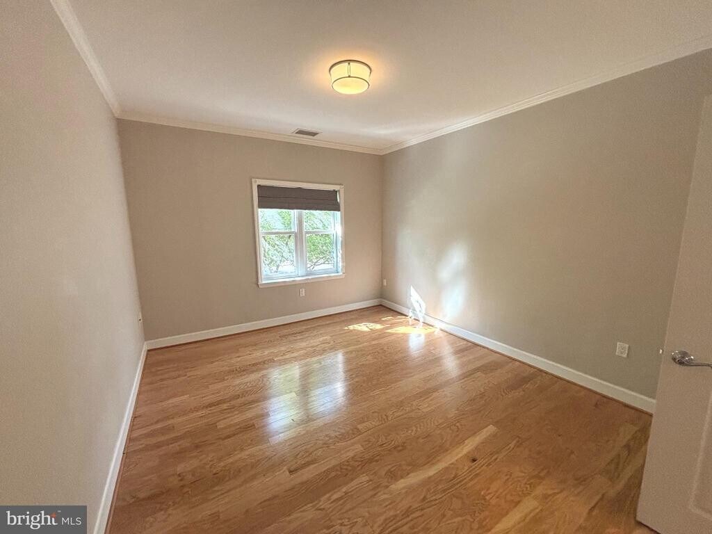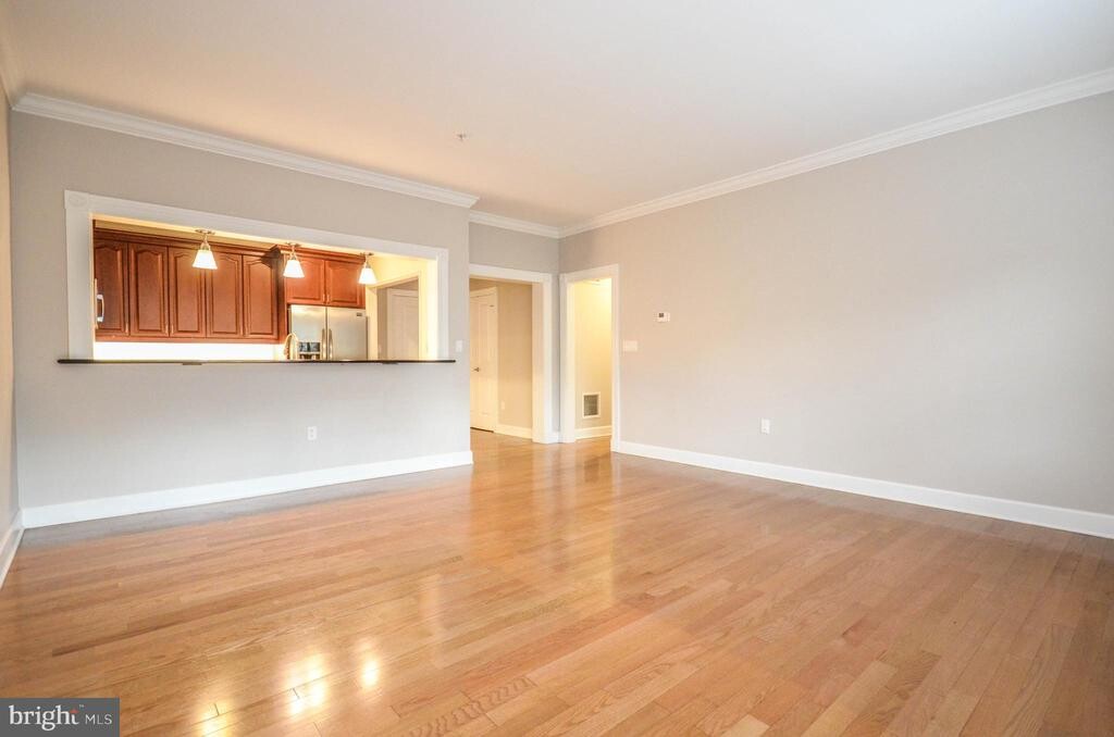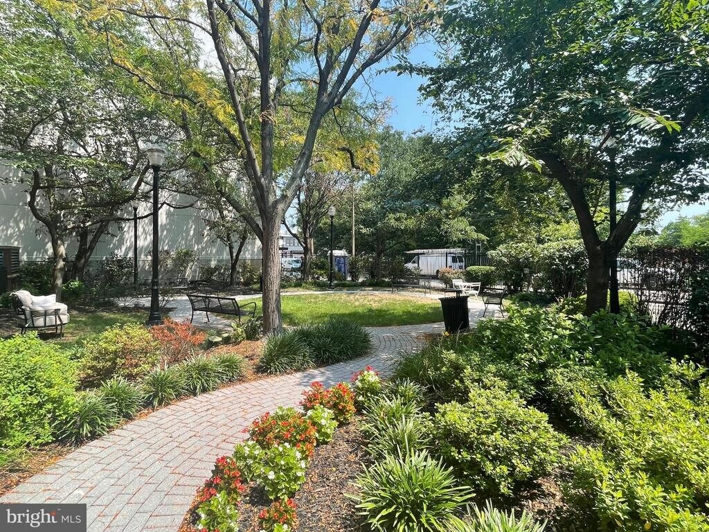 Stylish 1-bedroom, 1-bath condo offering the best of DC living with a perfect blend of comfort and convenience. The open-concept living and dining area is enhanced by custom built-ins, hardwood floors, and crown molding, while large windows fill the home with natural light. The updated kitchen features rich cabinetry, granite counters, stainless steel appliances, and a tile backsplash. The spacious bedroom offers double closets and treetop views. Step out onto your private balcony overlooking the park—an ideal spot for morning coffee or evening relaxation. Additional highlights include an in-unit washer/dryer, assigned garage parking, and access to a rooftop deck with sweeping city views. Ideally located near restaurants, shops, and Metro, this home delivers both tranquility and urban convenience. Good credit required. Pets case-by-case, limit 2, $50 monthly pet rent per pet plus $250 pet fee to the building. Cart in kitchen conveys with lease. Couch can also convey with the lease if tenant wishes.