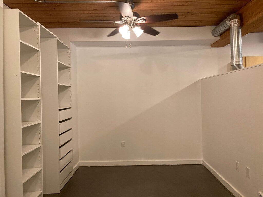 This isn't your standard 1 bedroom apartment. A private secure large storage unit is included in the price, as well as all utilities except electric. Two stories with a bathroom on each floor. Two large walk-in closets. Ground level end unit features private patio & an additional entrance. 18 foot ceilings, wall of windows, tons of natural light, concrete floors & exposed pipes. Industrial steel staircase leads to Loft master suite with washer/dryer in walk in closet. Large entry-way walk in closet/pantry. Storage unit is right across the hall. A Standalone dedicated parking spot right next to the elevator is available for rent. Furnishing options are available to suit your needs - whether partially or fully furnished -with pricing tailored to your selections. Centrally & conveniently located. Sit right across the street from amazon, & just minutes to FB, Goo.gle, and the rest of South Lake Union. Easy on/off freeways.