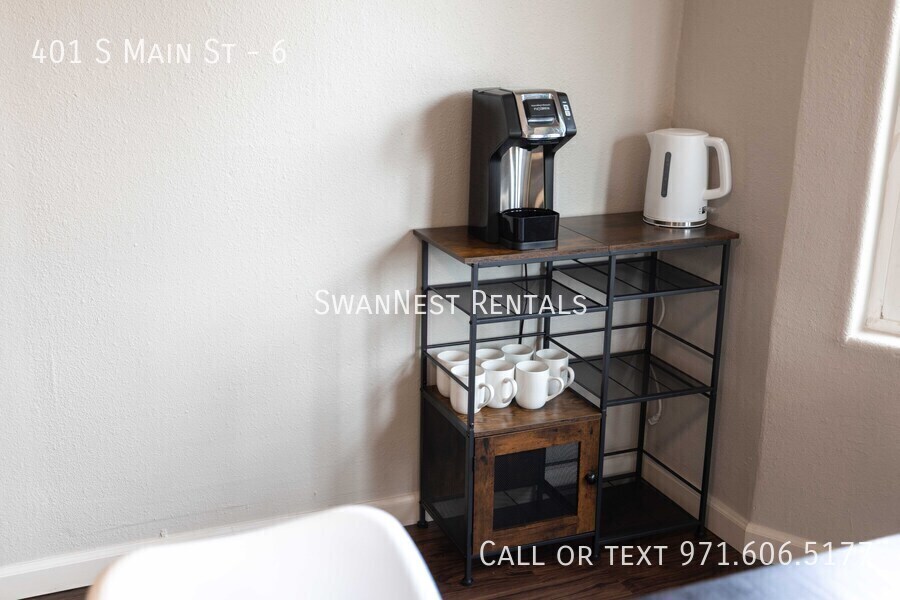 Price Availability Date Unit Sq Ft $900 April 30, 2026 8 - 401 S Main St 185 sq ft Model Amenities and Features