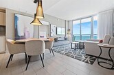 Feel at home in this brand-new luxury condo in front of Hollywood Beach, offering stunning bay and ocean views from the 8th floor. This three-bedroom unit features 2.5 bathrooms and a balcony, where you can enjoy both sunrise and sunset. This well-appointed apartment mixes natural wood and stone with organic textures and state-of-the-art technology. Highlights include a fully equipped kitchen with a Nespresso coffee machine, stainless steel refrigerator/freezer, glass stove, integrated oven, silent dishwasher, integrated microwave, stove, dishes, coffee maker, hairdryer, electronic safe, iron/ironing board, in-suite washer/dryer, and TVs in each room. Amenities include two infinity-edge ocean and bay view pools, a sundeck, private cabanas, a fitness center, and a hot tub. Valet parking is available for a fee: 1–6 nights cost $40 nightly, 7–29 nights cost $15 nightly ($105 weekly), and +30 nights cost $9.33 nightly ($280 monthly). A pack’n play crib is available for free upon request. Just beyond the resort, you'll find the Hollywood Beach boardwalk and miles of Blue Wave-designated beaches. Surrounded by lots of restaurants and the world-famous Gulfstream Park, where you can dine, enjoy horse races, or try your luck at the casino five minutes away. To the west, you can visit the famous colossal Hard Rock Guitar Hotel & Casino, and it is the perfect location to be on the beach if you are attending an event at Hard Rock Stadium. To the south, you can continue to the renowned Aventura Mall, or if you feel like going on an adventurous nightlife, you can head to South Beach to party all night. To the north, you can enjoy more shopping and restaurants in the city of Fort Lauderdale. The apartment is minutes from Fort Lauderdale Airport. For groceries, you will find a 24-hour Walmart right next door, and a Publix Supermarket is a two-minute drive away. [SI]