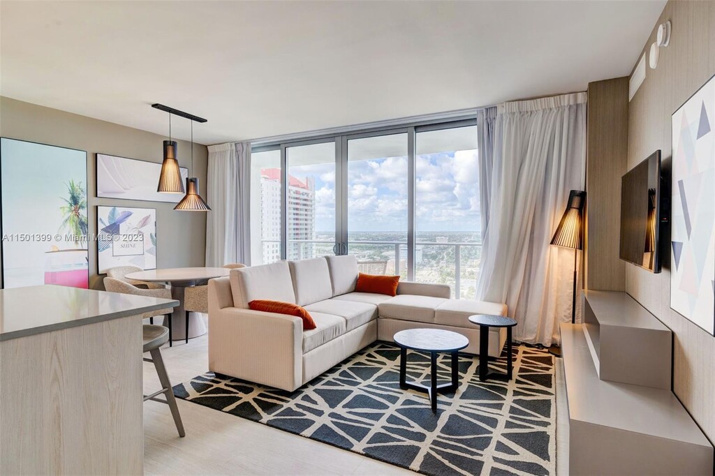 Welcome to a brand new luxury condo in front of Hollywood Beach, just a few minutes' drive to Aventura Mall and Sunny Isles Beach. This high-floor, three-bedroom bay view unit features a full kitchen, 2.5 bathrooms, a balcony, and an in-unit washer and dryer. Enjoy stunning views from the 20th floor, where you can witness both sunrise and sunset. South Florida’s newest luxury high-rise resort overlooks the shimmering Atlantic Ocean, perfect for a family and friends getaway. This well-appointed three-bedroom apartment mixes natural wood and stone with organic textures and state-of-the-art technology. Highlights include a fully equipped kitchen with a stainless steel refrigerator/freezer, glass stove, integrated oven, silent dishwasher, integrated microwave, and a large corner balcony to enjoy panoramic views of the bay and ocean. A resort fee will be charged at check-in and is not included. Valet parking is available with rates of $40 nightly for 1–6 nights, $15 nightly for 7–29 nights ($105 weekly), and $9.33 nightly for 30+ nights ($280 monthly). A Pack’n Play crib is available free upon request. Just beyond the resort, you'll find the Hollywood Beach boardwalk and miles of Blue Wave-designated beaches. Surrounded by numerous restaurants and the world-famous Gulfstream Park, where you can dine, enjoy horse races, or try your luck at the casino just five minutes away. To the west, visit the famous colossal Hard Rock Guitar Hotel & Casino, perfect for beachgoers attending an event at Hard Rock Stadium. To the south, explore the renowned Aventura Mall or head to South Beach for an adventurous nightlife. To the north, enjoy more shopping and dining in Fort Lauderdale. The property is minutes from Fort Lauderdale airport, with a 24-hour Walmart next door and a Publix Supermarket a two-minute drive away. Swimming is at your own risk as there is no lifeguard on duty, and children must be supervised by a responsible adult at all times. For your safety, no diving or running is allowed. The property management is not liable for any accidents, injuries, or losses that may occur while using the pool or surrounding areas. Design and décor may vary slightly from photos, and some items shown are for staging purposes only. [SI]