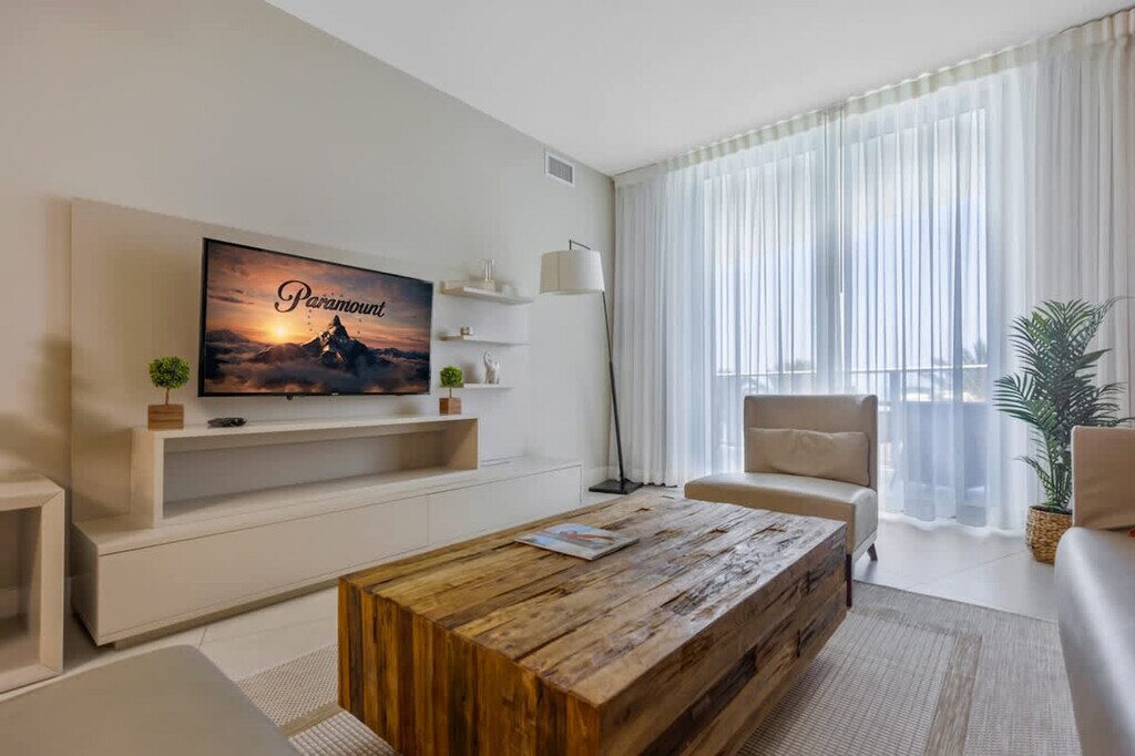 The advertised rate of $5,325/month is the lowest available price, based on a 30 day(s) stay with a move-in date of July 25, 2026. Rates vary depending on the duration of stay, season, and other parameters. For exact pricing and additional pricing components, please visit our website and enter your desired move-in and move-out dates. The rate is applicable when billed upfront; it can be higher if billed in multiple payments. Feel at home in this luxurious, modern 1-bedroom apartment on the 10th floor, offering 1,127ft² of upscale living space and breathtaking ocean views. This beautifully decorated apartment ensures a premium experience with fresh linens and towels. Enjoy full access to 5-star resort amenities and fast Wi-Fi. Two single double-thick air mattresses can be provided upon request. Located right on Hollywood Beach, this centrally located apartment is close to nightlife and is situated between Fort Lauderdale and Miami Beach. Groceries, restaurants, and malls are just 1 mile away, and Fort Lauderdale Airport (FLL) is 9 miles away, while Miami Beach is 20 miles away. Quiet hours are between 9:00 PM and 7:00 AM. [SI]