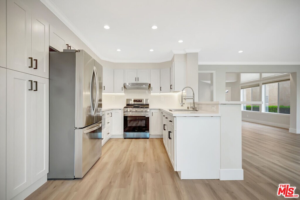 Located within the highly desirable Las Virgenes Unified School District, this beautifully remodeled two-story home is situated in the prestigious gated community of Calabasas Hills. Features high ceilings and abundant natural light with a formal living room upon entry. Updated kitchen with quartz countertops, new stainless-steel appliances, and breakfast bar opens to the dining area and family room with fireplace. Home is located on a private cul-de-sac and offers a backyard with serene greenery and bluff views. All four bedrooms are upstairs, including a spacious primary suite with enlarged bathroom and walk-in closet. Additional full bathroom upstairs and half bath downstairs. Washer and dryer located in the garage. Community amenities include two pools (one just minutes away), a park with playground and 24/7 security with guard upon entry. MLS# 26643283