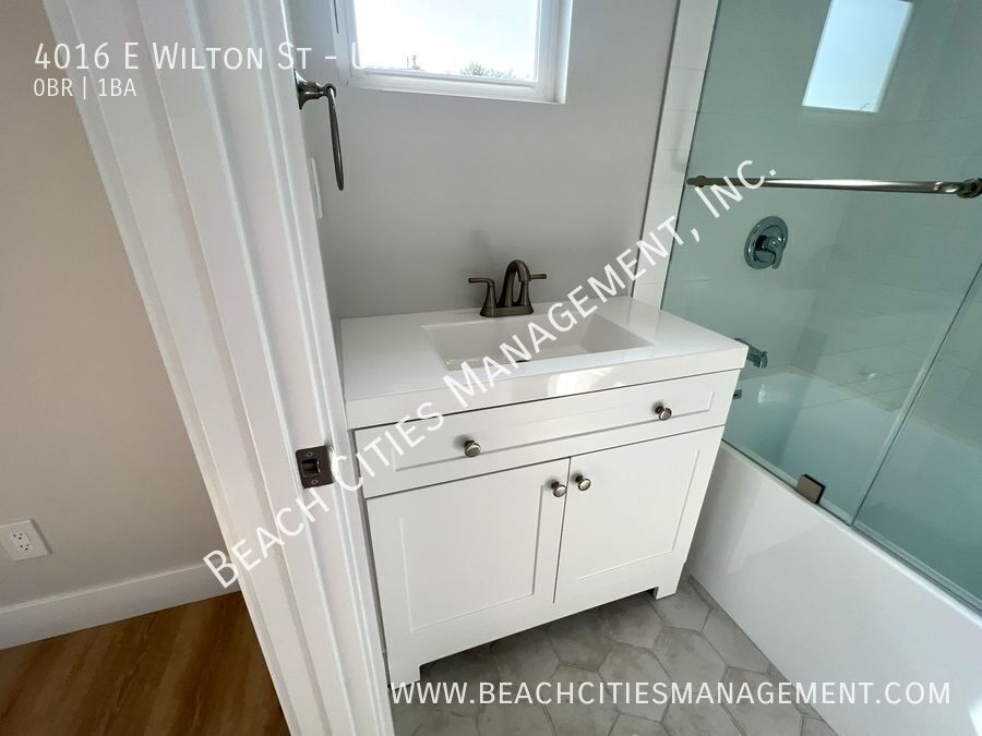 Welcome to your dream home! This stunning newly constructed and never lived-in studio will sweep you off your feet with its tasteful upgrades and modern features. Step inside and be greeted by exquisite flooring and freshly painted walls that exude elegance. The recessed lighting casts a warm glow, creating an inviting atmosphere throughout each room. Prepare to be amazed by the state-of-the-art kitchen, equipped with high-end stainless steel appliances. The modern kitchen cabinets provide ample storage space, ensuring that you have everything you need at your fingertips. And let's not forget the convenience of the high-end stackable washer and dryer, making laundry a breeze. Say goodbye to sweltering summers as the mini split system brings refreshing air conditioning to every corner of this home. The new shower and shower tile add a touch of luxury to your daily routine, while the new tub invites you to unwind and relax after a long day. This spacious studio is flooded with natural light, creating a vibrant and uplifting ambiance that will make you never want to leave. This property is guaranteed to meet your every need. This studio offers the unique additional amenity of a beautiful rooftop deck that's shared with the other residents of the property to enjoy and take advantage of. It's one of the best ways to enjoy the coveted Southern California weather while you lay back on one of the multiple lounge chairs available, as well as umbrellas to relax under. The 360 degree views available from this deck are breathtaking! Don't miss out on this incredible opportunity. Act quickly and make this dream home yours today! Pet Policy: Pet Application Required at