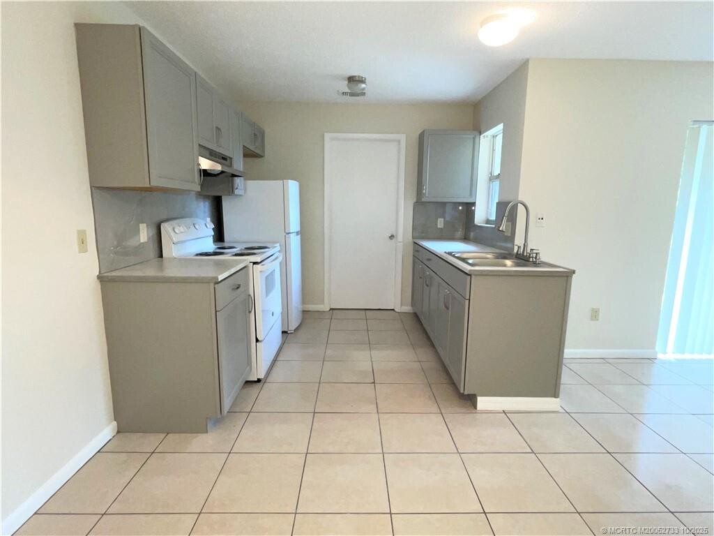 With just under 1000sf of space, this two bedroom, one and a half bath unit are on the right side of this duplex located on 14th Street in Fort Pierce. Tiled throughout. Newer kitchen cabinets and appliances. Appliances include refrigerator, range and hood vent. No Microwave, No Dishwasher. No Washer/Dryer. Tenant is responsible for utilities and securing a postal key for mailbox. Lawn care is provided. This unit will not last long. Call out office now to go over our criteria and set up a showing. No Pets allowed.