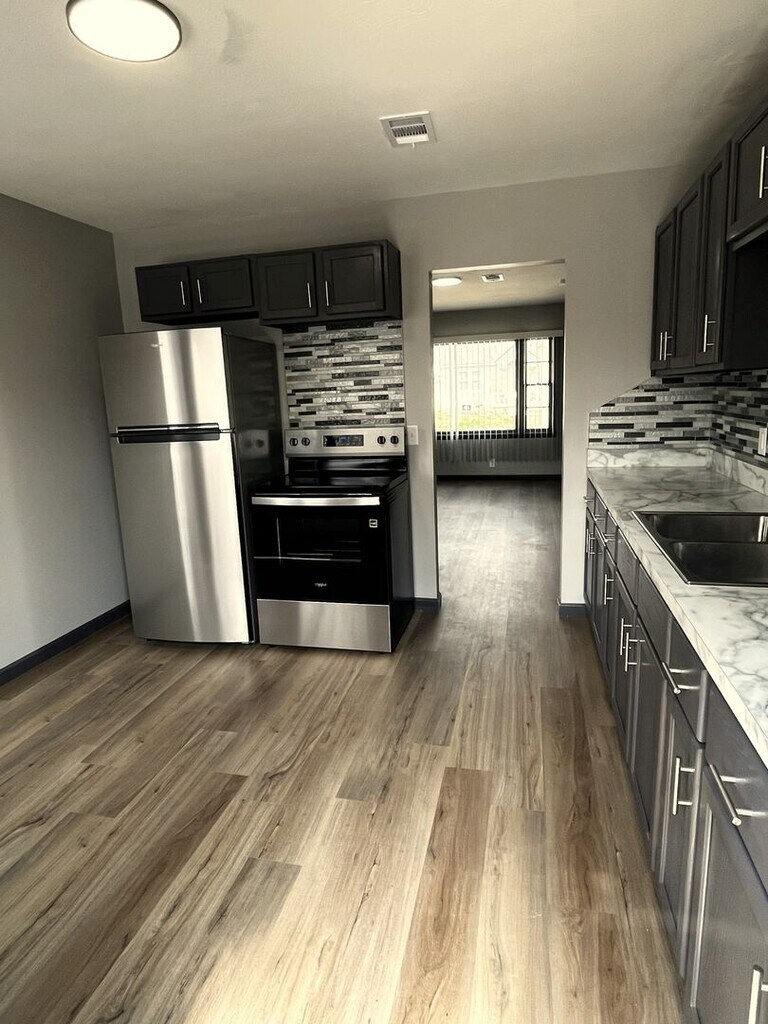 Step into comfort and style with this beautifully renovated 1-bedroom apartment nestled in a charming duplex. Located in the upper unit, this home offers the best of both worlds—privacy and convenience—with both front and rear private entrances. The back door leads directly to your own detached garage, included in the rent, making everyday living effortless. Inside, you’ll find sleek stainless steel appliances, updated finishes, and a modern aesthetic that feels fresh and inviting. Enjoy the rare perk of free laundry shared with just one other unit—no crowded facilities here. Outside, the shared backyard and driveway create a peaceful, residential feel that truly makes this space feel like your own home. If you're looking for a cozy, upgraded space with practical amenities and a touch of privacy, this one checks all the boxes. Amenities: quiet neighborhood, free laundry, stainless steel appliances, newly renovated, private back door entry, detached garage included