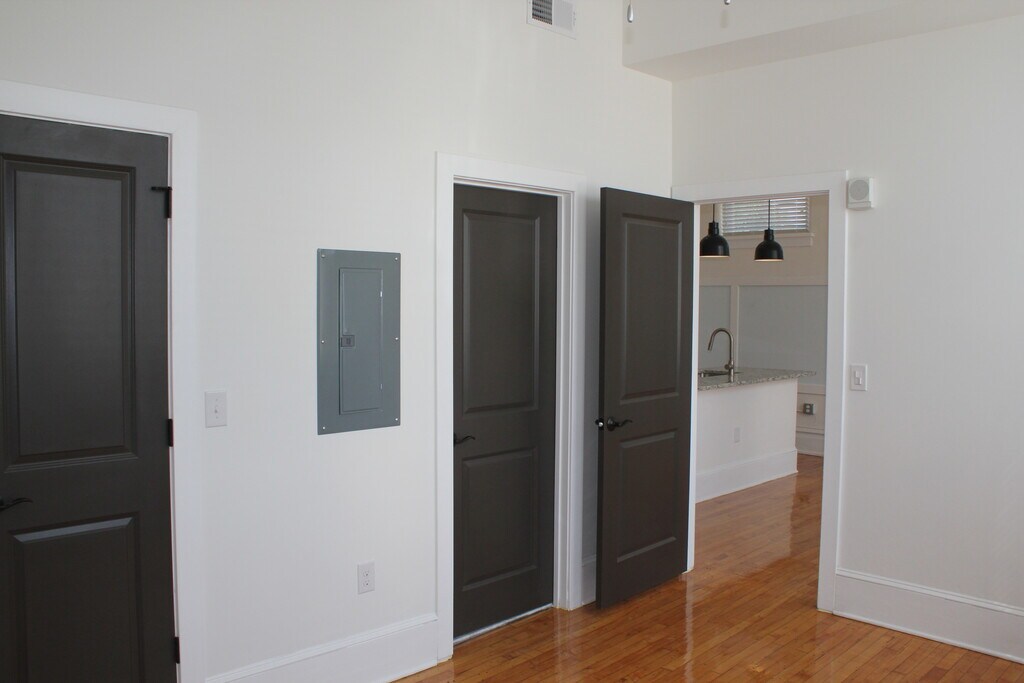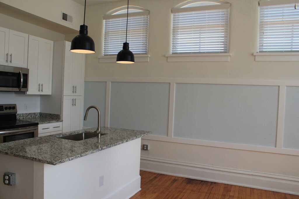 Woodstock Lofts is the mixed-use redevelopment of the historic School (403 W. Court Street) and Bank (114 W. Court Street) in charming Woodstock Virginia. This exciting redevelopment of the historic School (403 W. Court Street) building includes 12 upscale apartments, off-street parking, as well as flexible storage options. For more information, please visit us at find us on Facebook, or just send us an email at . Tours are given by appointment only, please leave a message or send us an email if you desire a tour. Thanks for your interest in Woodstock Lofts. Unit 101 features a private exterior (ground-level) entrance.