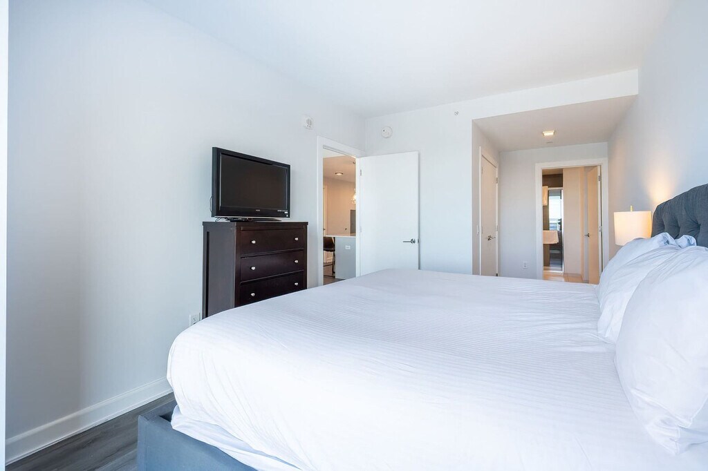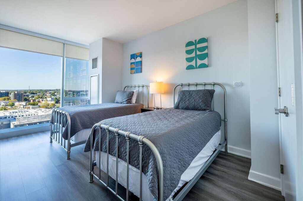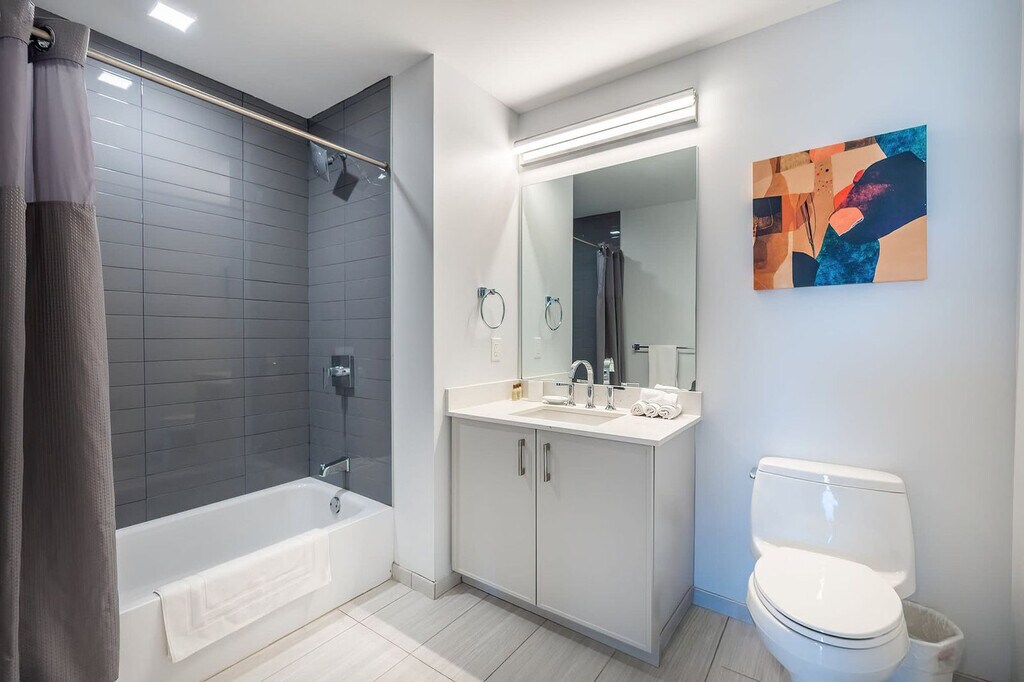 Feel at home in this gorgeous 1,039 sq. ft. apartment in downtown Stamford, featuring floor-to-ceiling windows, a dining area, and walk-in closets. Experience the state-of-the-art fitness center and rooftop terrace, complete with fire pits and BBQ grills. A dip in the pool or staying productive in the business center are also options. Starter essentials are provided. Parking is not included, but garage parking may be arranged for a fee. Pets are welcome with notice and a fee. Downtown Stamford is a hub of activity, boasting diverse dining options, cultural attractions like The Palace Theatre, and entertainment venues such as the Stamford Museum & Nature Center. The nearby vibrant Harbor Point district invites residents and visitors to discover the bustling boardwalk, enjoy waterfront dining, and partake in community events. For outdoor enthusiasts, Cove Island Park provides a picturesque retreat, while Mill River Park offers recreational activities and scenic landscapes. The train station is a short walk away. Quiet hours are between 10 PM and 6 AM. ID and background verification are required for entry. If a booking does not pass the identity verification process, the reservation may be canceled. Registration Number: 1 [SI]