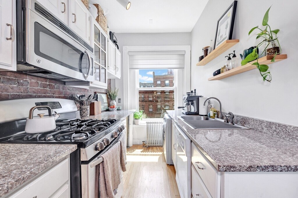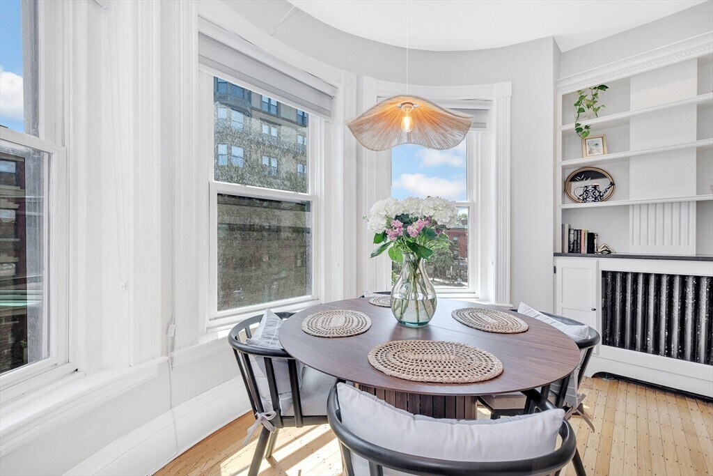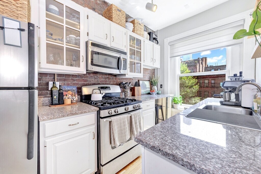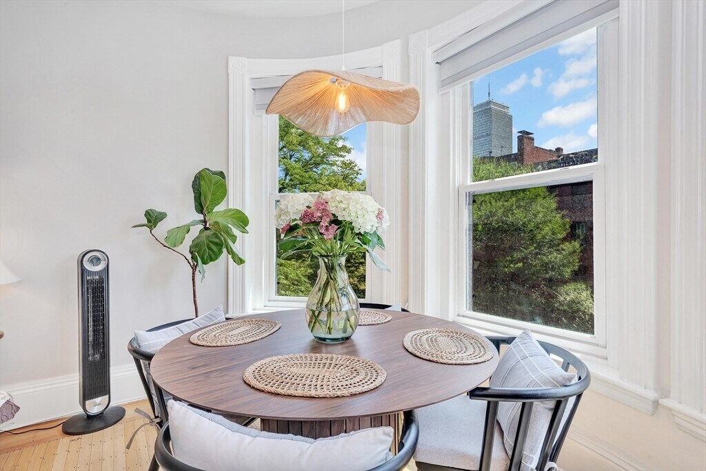 This 1-bedroom,1-bath apartment in the heart of Back Bay offers the best of city living. Just a short distance to the Charles River,Prudential Center,Fenway,the T,shopping,and restaurants. The sunlit living room features large bay windows,built-in shelves,and a fireplace. The kitchen includes custom cabinets,granite countertops,and stainless steel appliances. Hardwood floors throughout. The primary bedroom has a spacious walk-in closet,with additional storage in the hallway and bedroom. In-unit washer/dryer combo. A common roof deck provides sweeping views of the Charles River and Boston skyline. City living at its finest! MLS# 73444216