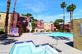 Rare 3-Bed, 2-Bath Top-Floor Corner Condo in a Prime Location! Recent upgrades include a brand-new AC unit, fresh interior paint, and a new washer and dryer. The spacious primary suite features a large garden tub and a generous closet. Enjoy peaceful views from your private balcony with extra storage. HOA covers water, sewer, and trash for added convenience. Community amenities include a pool, BBQ area, dog park, and clubhouse. Great location just minutes from the Las Vegas Strip, airport, and UNLV!