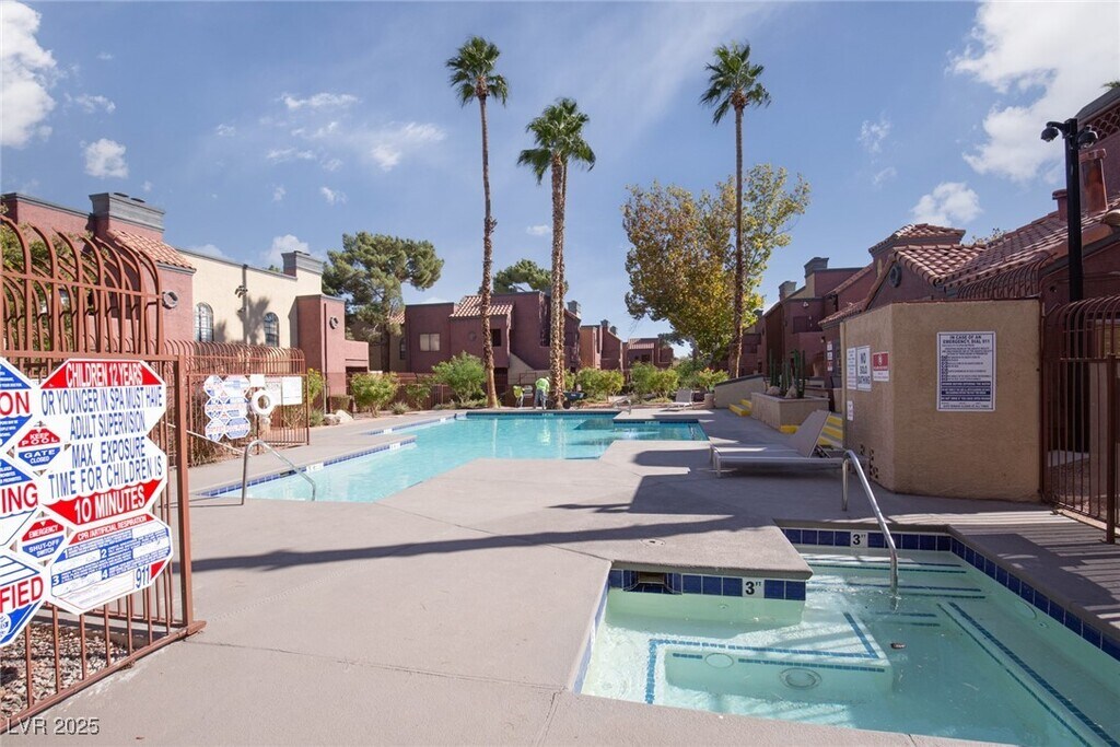 Step into luxury living just minutes away from the vibrant Las Vegas Strip, Las Vegas Airport and UNLV! This beautiful property offers the perfect blend of convenience, comfort, and style. Enter the second story condo to be greeted by a cozy open floor plan that's ideal for relaxing or entertaining. Natural warm light floods in through the sliding glass doors. Step to the balcony for a stunning view of the pool and hot tub below, creating a serene backdrop. This has a cozy one bedroom with sofa bed. Dining table, bar w stools and a granite kitchen. Plush carpeting that's 2025 new. The community is gated for added security.