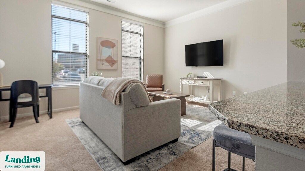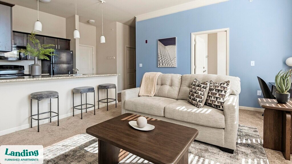 Landing offers flexible lease terms from weeks to months. Please always visit our website or contact us for the latest pricing & availability. Stay longer, save more: 6-Month Minimum base rent: starts at $2022/mo 12-Month Minimum base rent: starts at $1987/mo Landing offers flexible leases across a network of over 35,000 fully-furnished apartments throughout 375+ cities so you can rent on your terms, practically anywhere, and avoid the hassle of paying deposits or application fees. Visit to learn about all the benefits of a Landing membership, see our competitive up-to-date pricing, explore available apartments, take virtual tours, and make reservations online without jumping through traditional rental hoops. Landing's apartments at West Pine Lofts are designed for comfortable, easy living, with the ability to stay as long as you like. Experience living with Landing Every apartment is outfitted with all the modern essentials including: custom-designed furnishings, a fully-equipped kitchen with deluxe stainless steel appliances, a gourmet coffee maker, premium linens, Smart TVs, and incredibly fast, reliable internet for working from home. When you live with Landing, you'll enjoy a hassle-free experience with the added benefit of 24/7 access to our dedicated member experience team. Some of the nitty-gritty: a background check and proof of income are required; we're completely smoke-free; bundled utility packages and pricing vary based on length of stay; pet-friendly options available; listed price reflects a 12-month minimum stay.