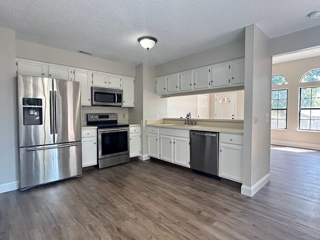 Fabulous 3 bedroom,2 bath single family home in Fayetteville now available for rent. Large,open kitchen overlooks living area. Great for visiting with family and friends. Kitchen has tons of white wood cabinetry cabinets/ drawers,pantry and a window seat. Appliances include stainless steel refrigerator,electric range,microwave and dishwasher. Living room has a cozy gas fireplace,tall arched windows and vaulted ceiling. 3 good-sized bedrooms. Master bedroom has a walk-in shower and huge walk-in closet. Guest bathroom has a shower/tub combo. Ceiling fans throughout. Great deck and large privacy fenced yard. 2-car garage. House is situated in a cul-de-sac. Pet friendly. Application fee $25 per adult. Security Deposit $1,700. Cleaning Fee $440. MLS ID 1338712