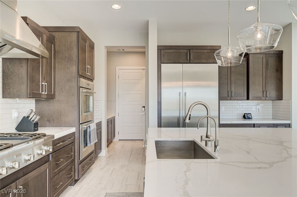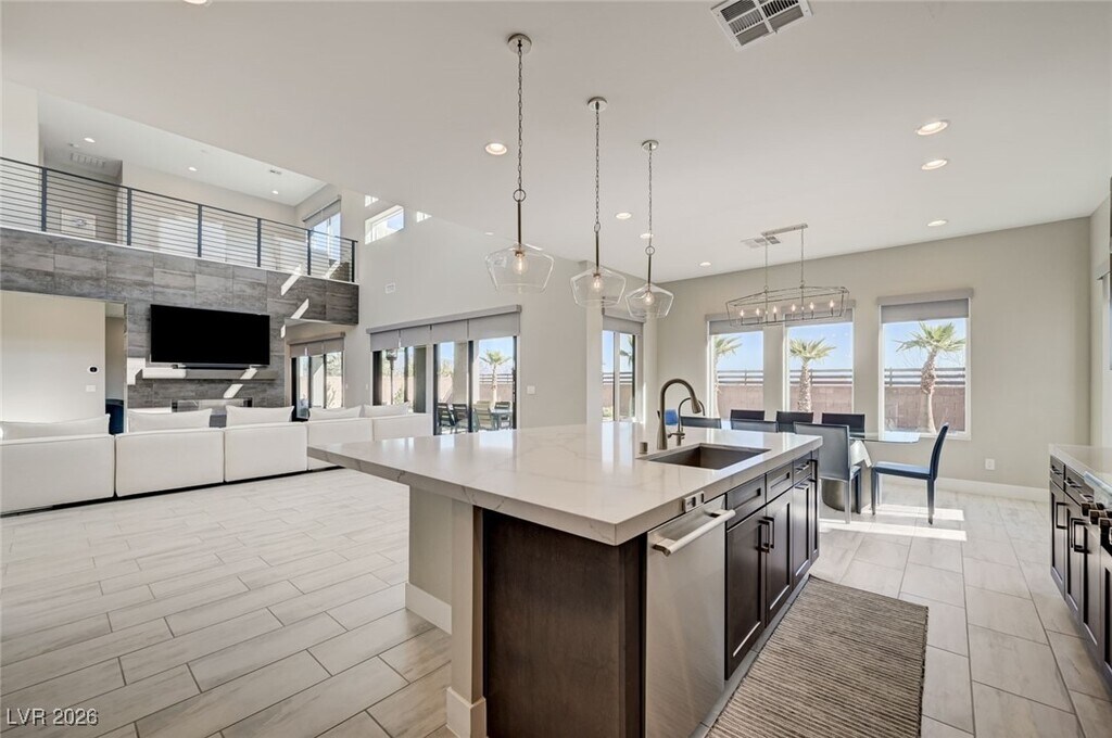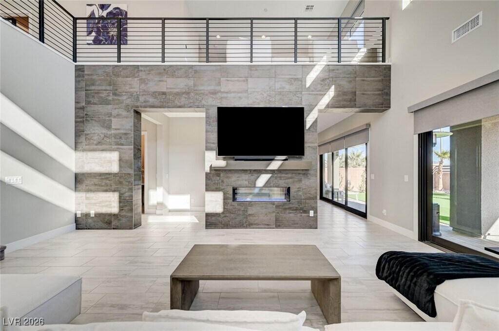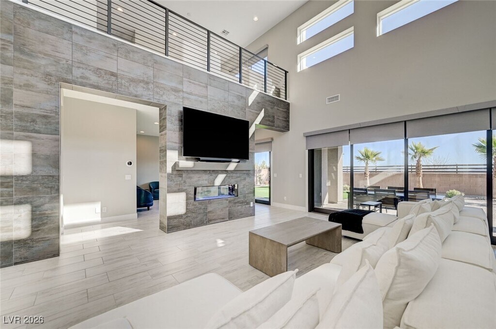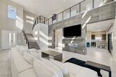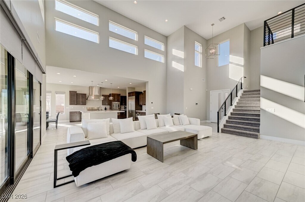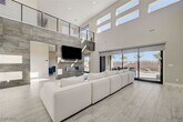 Welcome to a fully furnished contemporary home located in a gated enclave at the base of Lone Mountain. This luxury residence offers mountain and valley views, refined finishes, and a thoughtfully designed open-concept layout ideal for entertaining. The expansive great room flows into a chef’s kitchen featuring Thermador appliances, quartz countertops, and custom cabinetry. Just off the main living area, a stylish full wet bar and striking double-sided fireplace create an inviting atmosphere. Multi-slide doors open to the backyard, delivering seamless indoor-outdoor living. The primary suite features a private balcony and spa-inspired bath with soaking tub and walk-in shower. Upstairs includes a spacious loft and balcony with valley views. A private, fully equipped multi-gen suite offers its own living area, kitchen, laundry, bedroom, full bath, private entrance, single-car garage, and yard space. An exceptional opportunity for elevated, resort-style living.