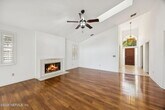 Nestled within the secure,guard-gated enclave of the Villages of San Jose,this charming home offers comfortable,maintenance-free living in a highly sought-after community. The neighborhood boasts lush,well-kept landscapes,a serene lake,a swimming pool,& pickleball/tennis courts,creating a perfect backdrop for leisurely strolls & an active lifestyle. The residence features a versatile,smart floor plan that can function as a 2 bedroom,2 bath home w? an office,or easily convert to a full 3bedroom layout to suit your needs. Step inside to discover elegant wood flooring & classic plantation shutters throughout. A spacious family room,complete w/ cozy fireplace,provides a welcoming atmosphere & offers views of the large,private backyard & covered patioideal for relaxing or entertaining. The home is rounded out by a formal dining room,a convenient eat-in kitchen,& practical 2 car attached garage,all situated in a peaceful cull-de sac. MLS# 2119084